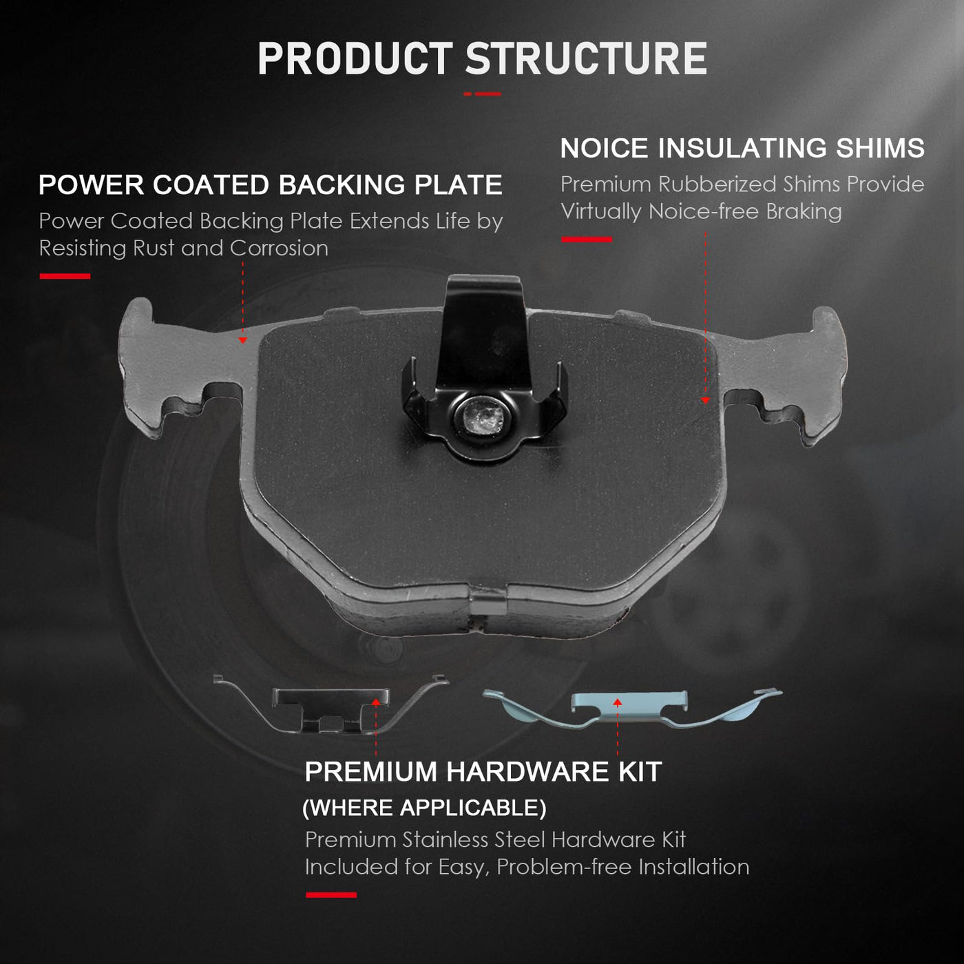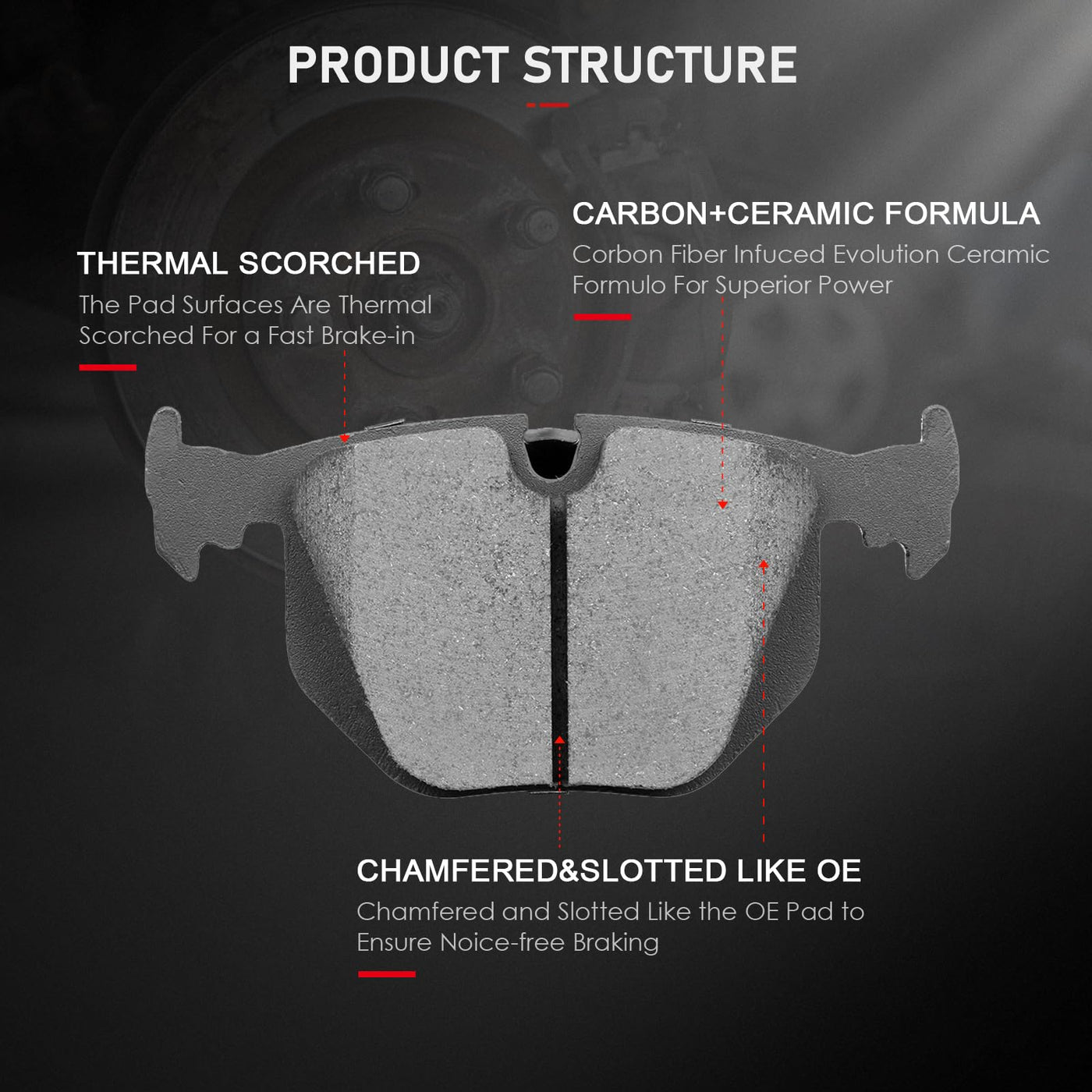 Cciyu D681 D683 Front & Rear Ceramic Disc Brake Pads Kit - 8Pcs For Bmw 740I, 740Il, M5, X5