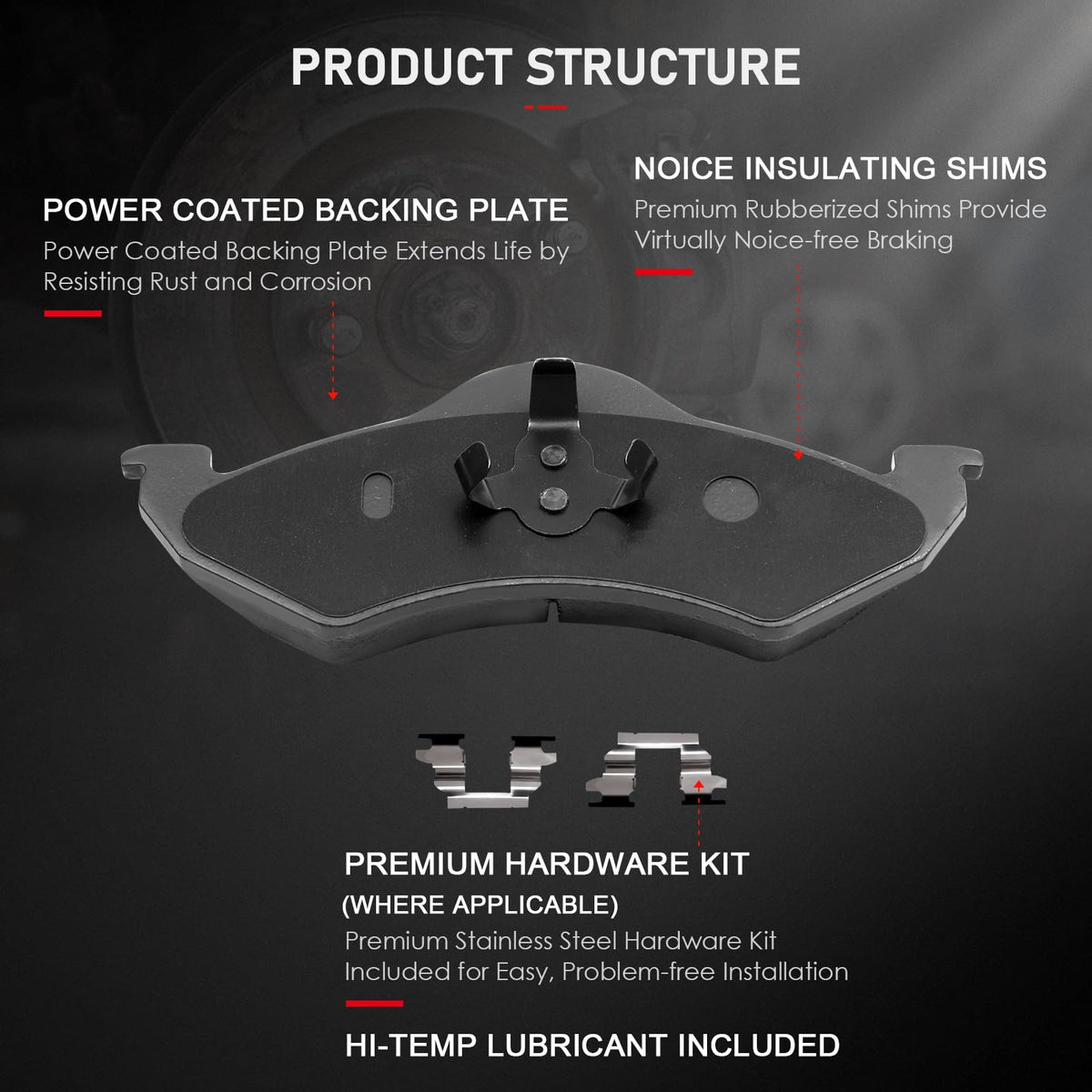 Cciyu D820 Front Ceramic Brake Pads Kits 4Pcs Fit For 2000-2002 For Dodge Dakota,2000-2002 For Dodge For Durango
