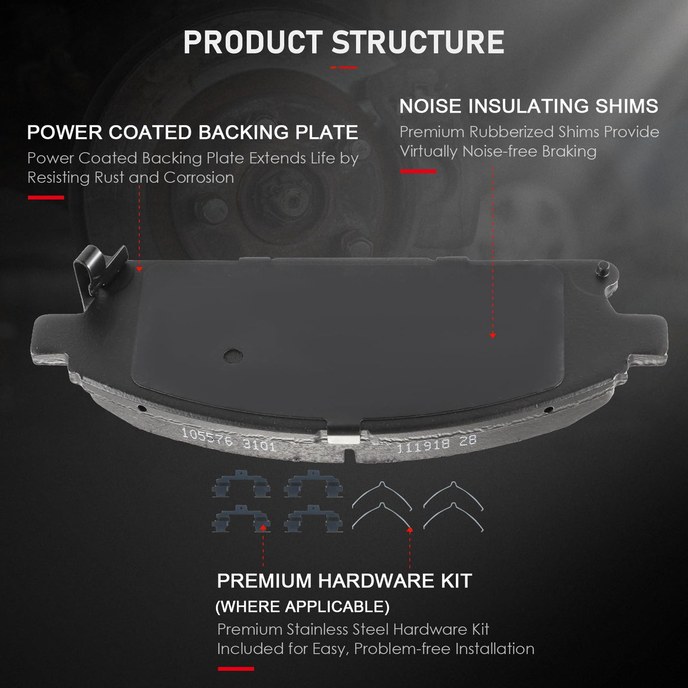 Cciyu D855 Front Semi-Metallic Disc Brake Pads Kit For Acura Mdx 2003-2006, Nissan Pathfinder 1996-2004, Quest 2004-2009 2011-20