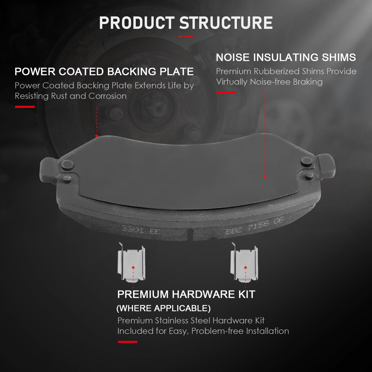 Cciyu D856A Front Ceramic Brake Pads Kits 2001-2006 For Chrysler Town & Country,2001-2003 For Chrysler Voyager,2001-2007 For Dod
