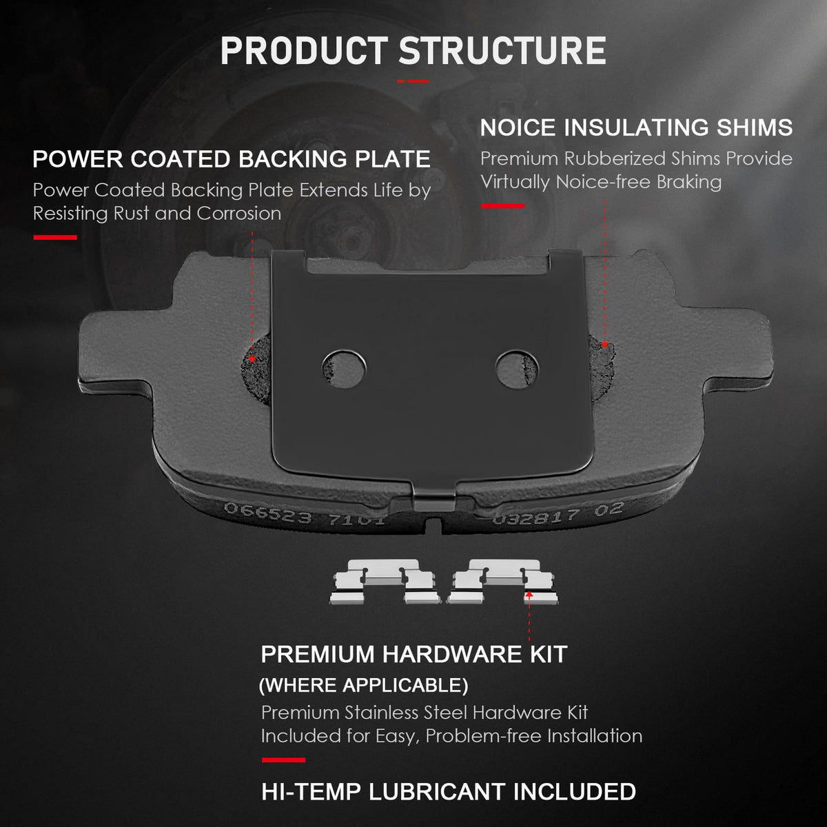Cciyu D865 Rear Ceramic Brake Pads Kits 4Pcs Fit For 2001-2006 For Acura Mdx,2002-2004 For Honda Odyssey,2003-2008 For Honda Pil