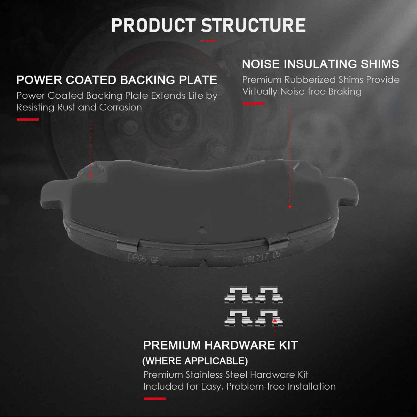 Cciyu D866 Front Ceramic Disc Brake Pads Kit For Chrysler 200 Sebring For Dodge Avenger Caliber Stratus For Jeep Compass Patriot