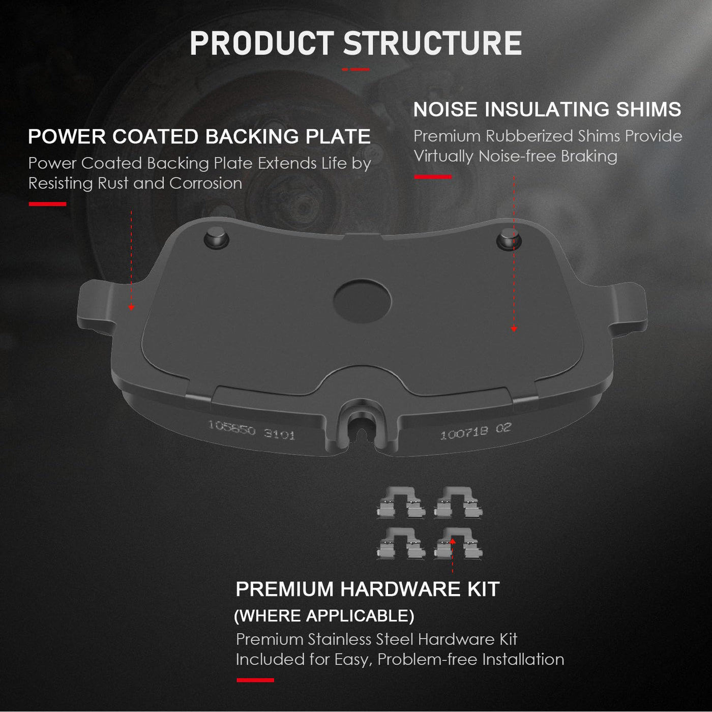 Cciyu D872 D873 Front & Rear Semi-Metallic Disc Brake Pads Kit For Mercedes-Benz C230 C240 C280 C320 C350 Clk320 Clk350 Slk280 S