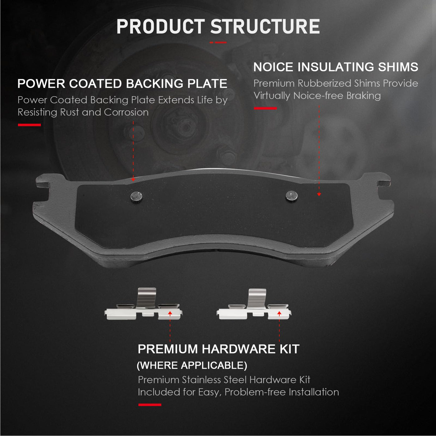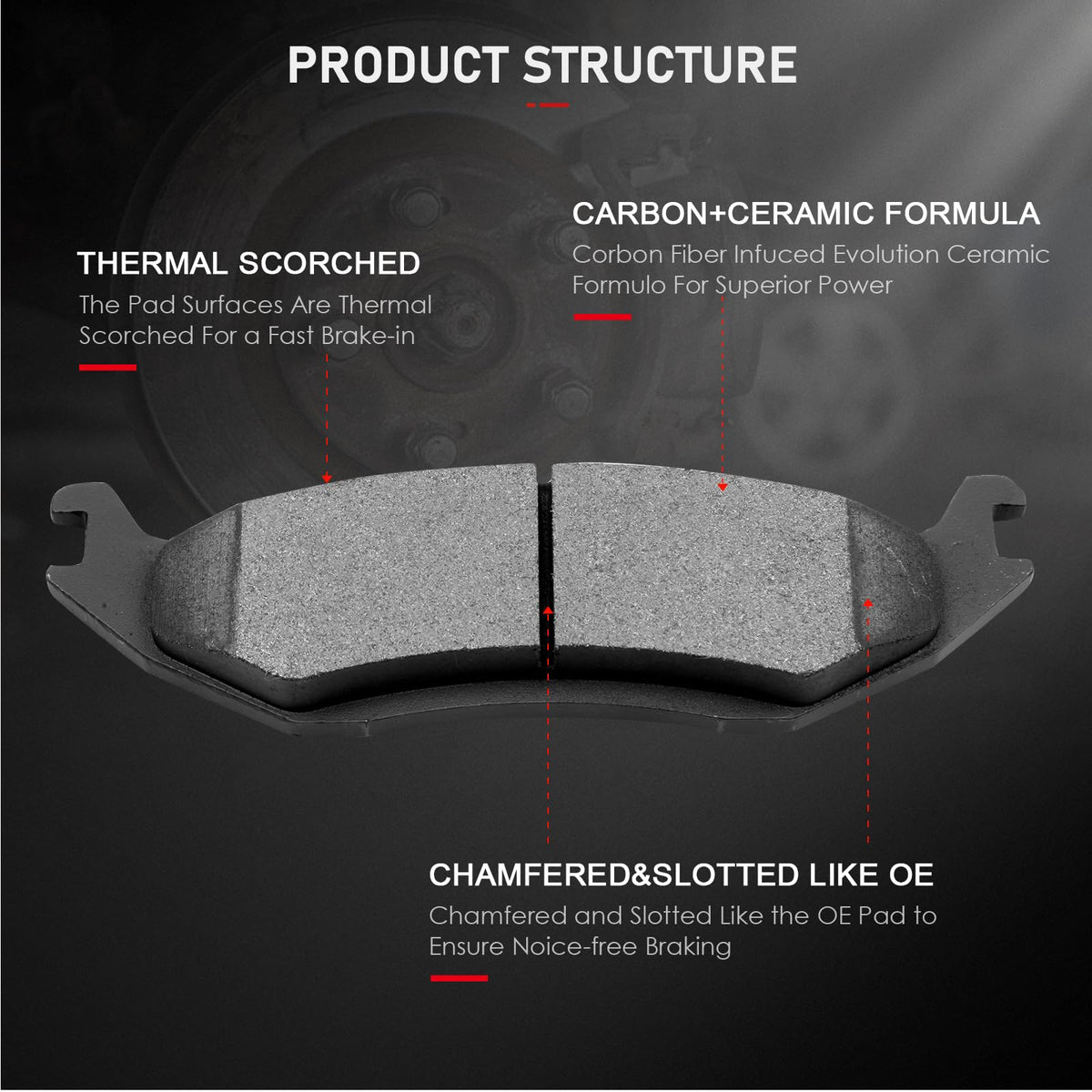 Cciyu D966 D967 Front & Rear Professional Ceramic Disc Pads Set Fit For 2003-2006 For Dodge Durango, 2002-2005 For Dodge For Ram