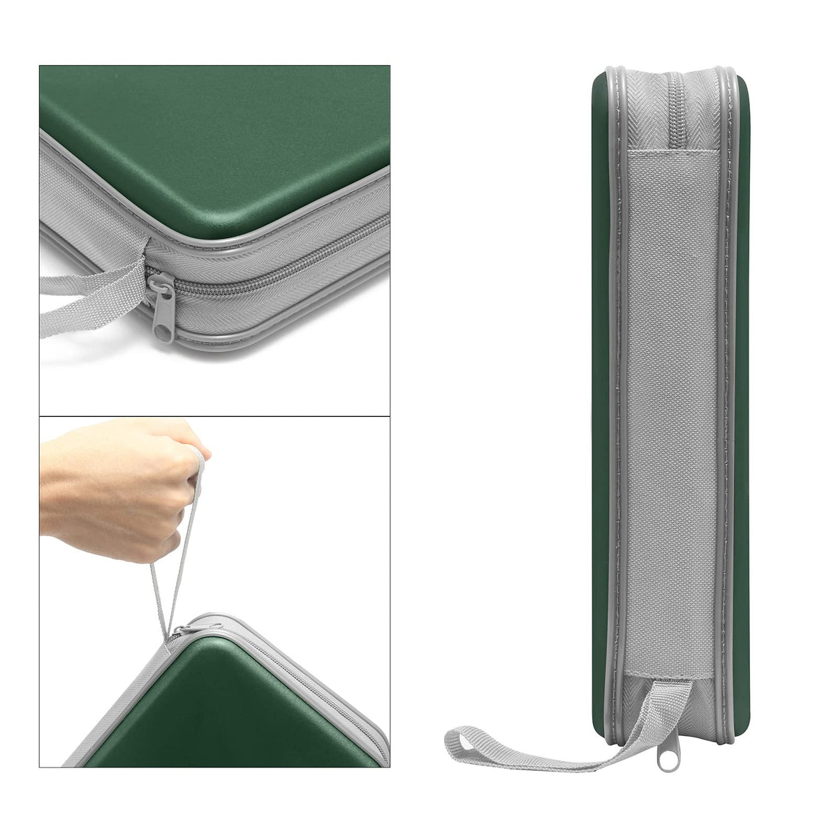 Siveit High Quality Dark Green 96 Capacity Lightweight Carrying Cd/Dvd Storage Bag Our Siveit Cd Case Does Its Job Very Well. Moisture And Strong Plastic +Pp Film + Non-Woven Fabric Case Design Is Durable Enough To Store It Anywhere Without Worrying About Your Cds Being Crushed And Scrached. It Is Compact And Portable, Holding Around 96 Cds Or Dvds With Zippered Closure Without Being Super Big And Bulky.1.Cd Case Size:11.4X6.3X2.4 Inch(Lxwxh)2.Provides Maximum Protection From Dust, Scratches And Other Disk Damage.3.Organizer Holds 96 Cds,The Already Pulled Out Tabs Make It Easy For You To Slide Your Discs Right Into The Pockets.4.Transparent Sleeves For Improved Media Organization.5.Total: 1X Siveit Dark Green Cd/Dvd Wallet Binderattention: We Have Upgraded Our Cd Bags, It Holds 96 Cds, And The Zipper Can Be Closed Easily And Perfectly