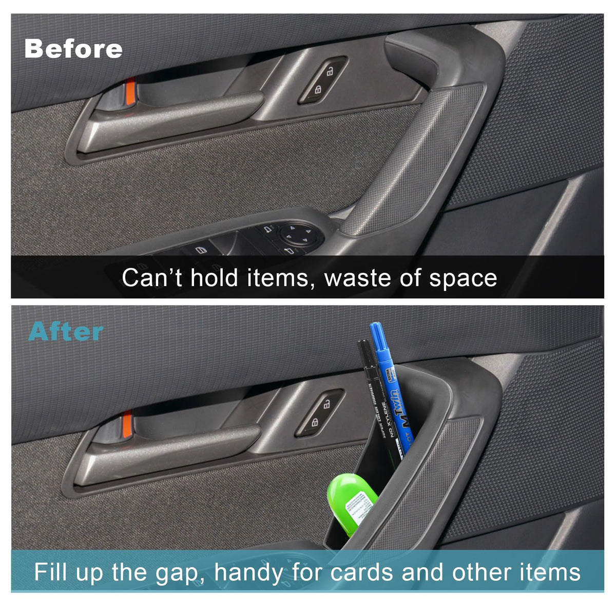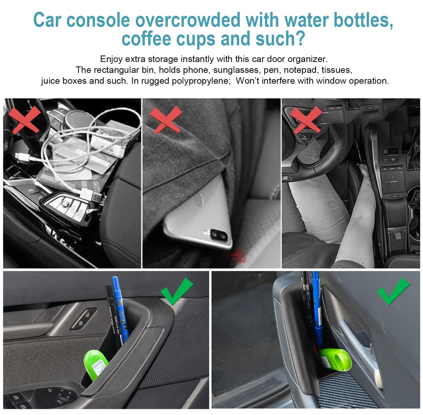 CDEFG for 2023 2024 2025 CX-50 Door Side Storage Box Handle Pocket Trash Container 2023 2024 CX50 Console Driver Passenger Doors Storage Case 22023 2024 2025 CX50 Accessories (4PCS for Front and Back Doors) Why Do You Need These Side Door Storage Boxes for Your CX-50? ? As for most 2023 2024 CX50 owners, there is not enough room for 2023 2024 CX50 console to put their little stuff in ? And then we need more storage space on your car, so that we can utilize the space that allows us to hold cell phone or wallet and more other items ? Sturdy and safe, a good temporary storage solution for doors ? These organizers are roomy enough to put your cell phone and other small items in, it stays in its place when opening your car doors, looks like its meant to be there ? It is a great extra storage for doors whether your car doubles as a daily driver and a weekend toy or just an occasional trip Feature: 1. 2023 2024 CX50 Accessories 2. Extra Storage Space for Grab Handle 3. Use for Small Items to Place4. Easy to Install, No Tools Required 5. Fits Perfectly for 2023 2024 2025 CX-50 6.Package Includes: 2PCS for Front Doors, 2PCS for Back Doors, 4PCS for Front & Back Doors