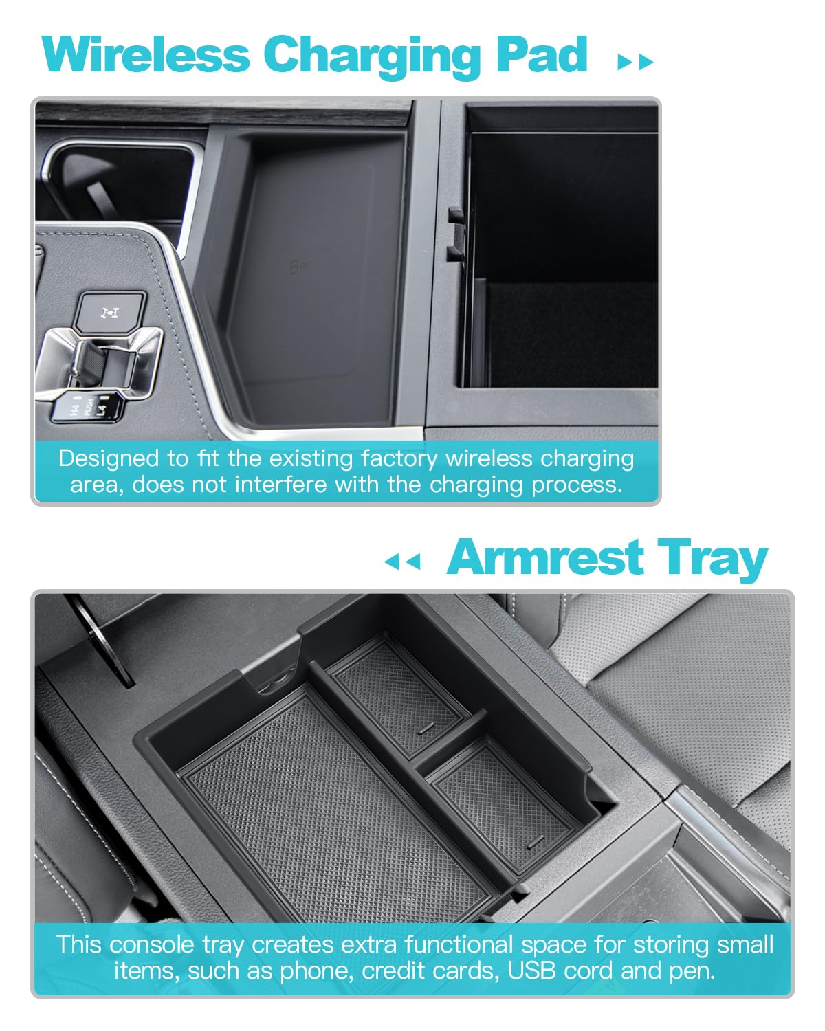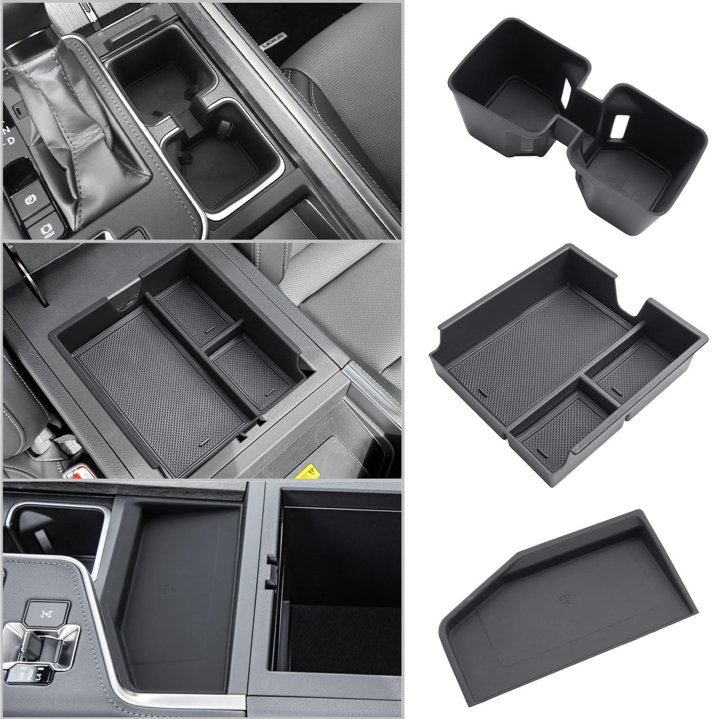 CDEFG 3PCS for 2024 GX 550 Center Console Organizer Tray for 2024 GX 550 Central Consola Middle Armrest Tray Wireless Charging Pad Cup Holder Storage Box 2024 2025 GX 550 Interior AccessoriesCompatible with: 2024 GX 550 Premium,GX 550 Luxury,GX 550 Overtrail(Not for Trims with Cool Box) PRODUCT FEATURES: 1. Material: ABS Plastic2. Available Colors: Black3. Package Contents: 1 x 2024 GX 550 Organizer, 1 Set of Anti Slip MatsWhy Should the 2024 2025 GX 550 Owners Have This Organizer Installed? 1. The factory 2024 GX 550 armrest is deep and everything just got lost at the bottom, adding this 2024 GX 550 center console organizer to your car makes everything organized and settle your items easier.2. Refuse the coins and cards to scatter all over the 2024 GX 550 interior. Makes your armrest organized and looks much cleaner 3. Easy to install, helps keep everything organized. Leaves plenty of room for 2024 GX 550 console storage. 4. This organizer comes with removable non-slip rubber mats on the bottom for each compartment helps keep unnecessary noise down along with the 2024 GX 550 organizer.5. The rubber mats is easily removable for cleaning, you can remove it if you need to clean. 6. Better classification of items, easier to find. 2024 GX 550 Organizers can store mobile phones, cards, pens, coins, etc.7. The precise fit of the 2024 GX 550 organizer storage compartments.8. Solid and durable, it wont slide out when stopping, accelerating or decelerating.9. Cute and practical, its near at your hand. Convenient to classify your small items in car and makes the console much better than the factory 2024 GX 550 console
