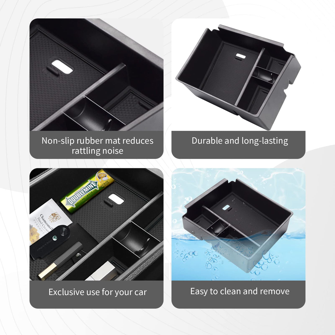 Q: Is installation of the organizer tray difficult?A: No, the CDEFG Center Console Organizer Tray is designed for easy installation. Simply drop it into your console without the need for any drilling or modifications. It comes with non-slip mats that keep items secure and prevent sliding, even on bumpy roads.