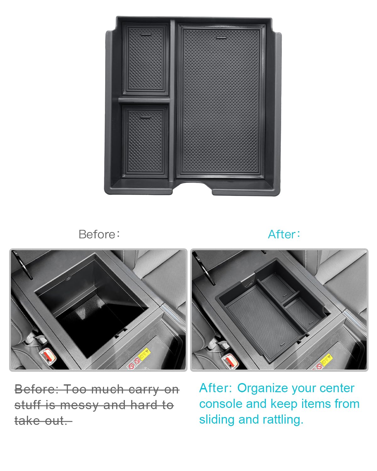 CDEFG for 2024 GX 550 Center Console Organizer Tray for 2024 GX 550 Central Consola Middle Armrest Tray Storage Box 2024 GX 550 Interior AccessoriesCompatible with: 2024 GX 550 Premium,GX 550 Luxury,GX 550 Overtrail(Not for Trims with Cool Box) PRODUCT FEATURES: 1. Material: ABS Plastic2. Available Colors: Black3. Package Contents: 1 x 2024 GX 550 Organizer, 1 Set of Anti Slip MatsWhy Should the 2024 2025 GX 550 Owners Have This Organizer Installed? 1. The factory 2024 GX 550 armrest is deep and everything just got lost at the bottom, adding this 2024 GX 550 center console organizer to your car makes everything organized and settle your items easier.2. Refuse the coins and cards to scatter all over the 2024 GX 550 interior. Makes your armrest organized and looks much cleaner 3. Easy to install, helps keep everything organized. Leaves plenty of room for 2024 GX 550 console storage. 4. This organizer comes with removable non-slip rubber mats on the bottom for each compartment helps keep unnecessary noise down along with the 2024 GX 550 organizer.5. The rubber mats is easily removable for cleaning, you can remove it if you need to clean. 6. Better classification of items, easier to find. 2024 GX 550 Organizers can store mobile phones, cards, pens, coins, etc.7. The precise fit of the 2024 GX 550 organizer storage compartments.8. Solid and durable, it wont slide out when stopping, accelerating or decelerating.9. Cute and practical, its near at your hand. Convenient to classify your small items in car and makes the console much better than the factory 2024 GX 550 console