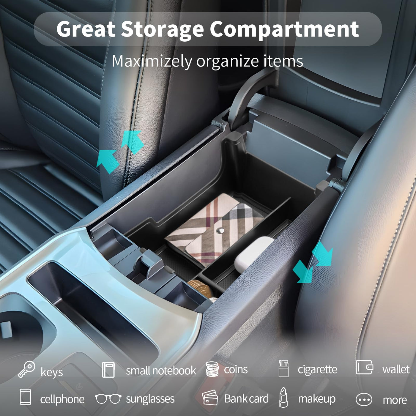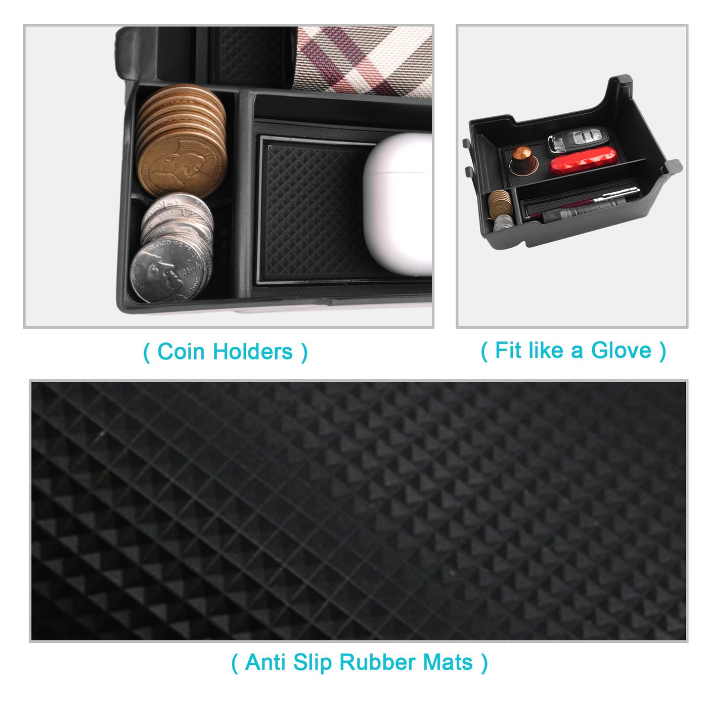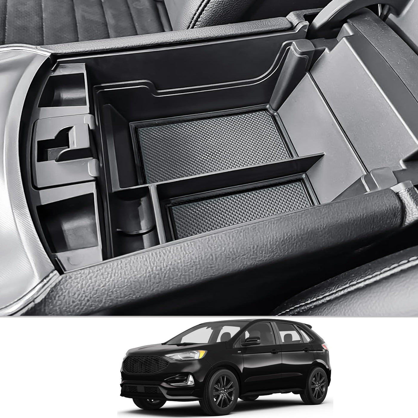 CDEFG for 2020 2021 2022 2023 2024 Edge Center Console Organizer Tray for 2020-2024 Edge Central Consola Armrest Tray Storage Box 2024 Edge Secondary Insert Tray Coin Container 2024 Edge Interior AccessoriesCompatible with: 2020 2021 2022 2023 2024 Edge Titanium, SEL, ST-Line and SE PRODUCT FEATURES: 1. Material: ABS Plastic2. Available Colors: Black3. Package Contents: 1 x Edge Organizer, 1 Set of Anti Slip Mats Why Should the 2024 Edge Owners Have This Organizer Installed? ? The factory Edge armrest is deep and everything just got lost at the bottom, adding this Edge center console organizer to your car makes everything organized and settle your items easier.? Refuse the coins and cards to scatter all over the Edge interior. Makes your armrest organized and looks much cleaner ? Easy to install, helps keep everything organized. Leaves plenty of room for Edge console storage. ? This organizer comes with removable non-slip rubber mats on the bottom for each compartment helps keep unnecessary noise down along with the Edge organizer.? The rubber mats is easily removable for cleaning, you can remove it if you need to clean. ? Better classification of items, easier to find. Edge Organizers can store mobile phones, cards, pens, coins, etc.? The precise fit of the Edge organizer storage compartments.? Solid and durable, it wont slide out when stopping, accelerating or decelerating.? Cute and practical, its near at your hand. Convenient to classify your small items in car and makes the console much better than the factory Edge console!
