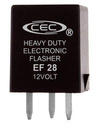 Q: Is the CEC Industries EF28 Flasher compatible with all vehicle types?A: The EF28 Flasher is designed to work within a voltage range of 11 to 15 Volts D.C, making it compatible with most vehicles that operate within this voltage range.