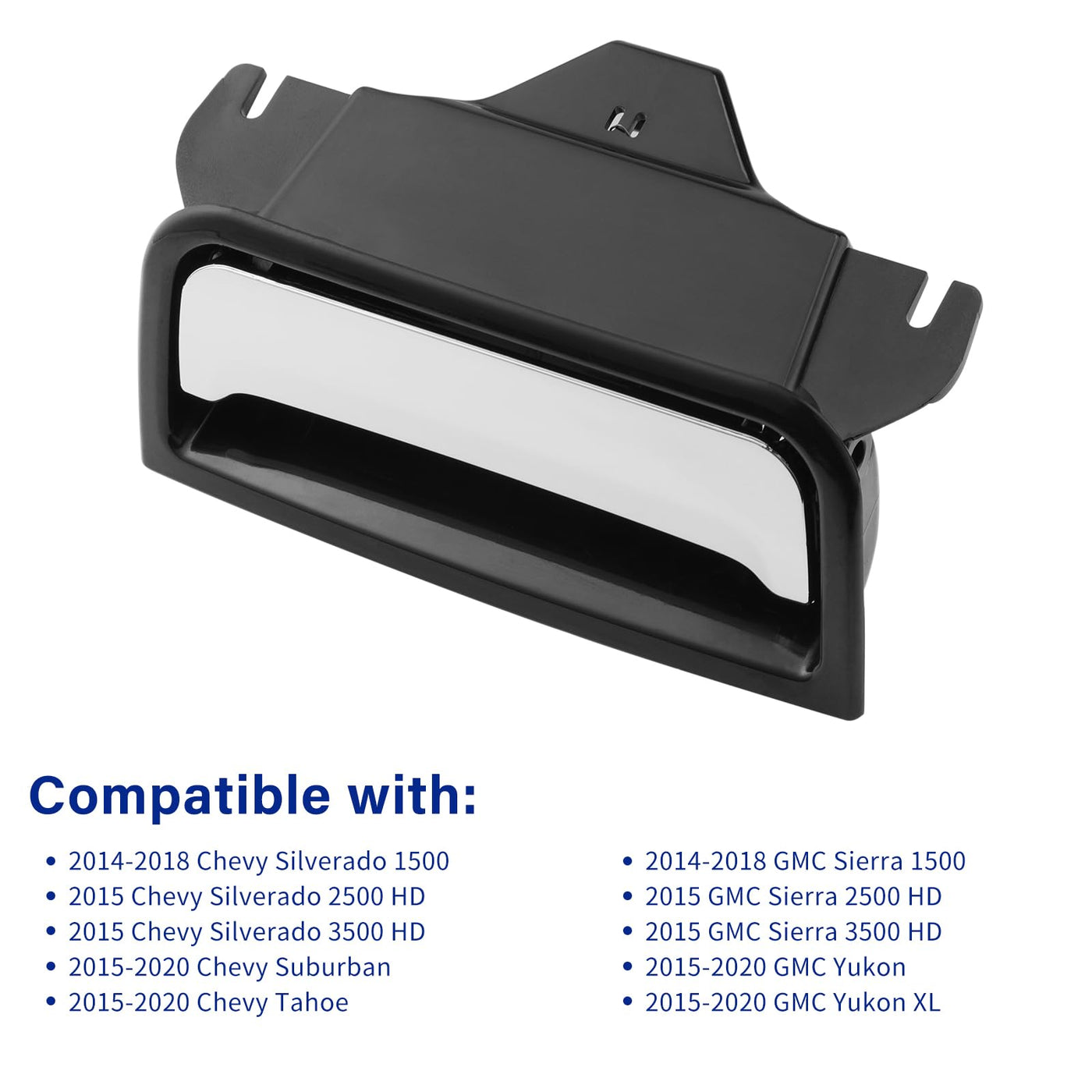 Q: Is this center console latch compatible with my 2014 Chevy Silverado?A: Yes, this center console latch is compatible with the 2014 Chevy Silverado 1500, 2500, and 3500 models, as well as other compatible models from 2014 to 2020.