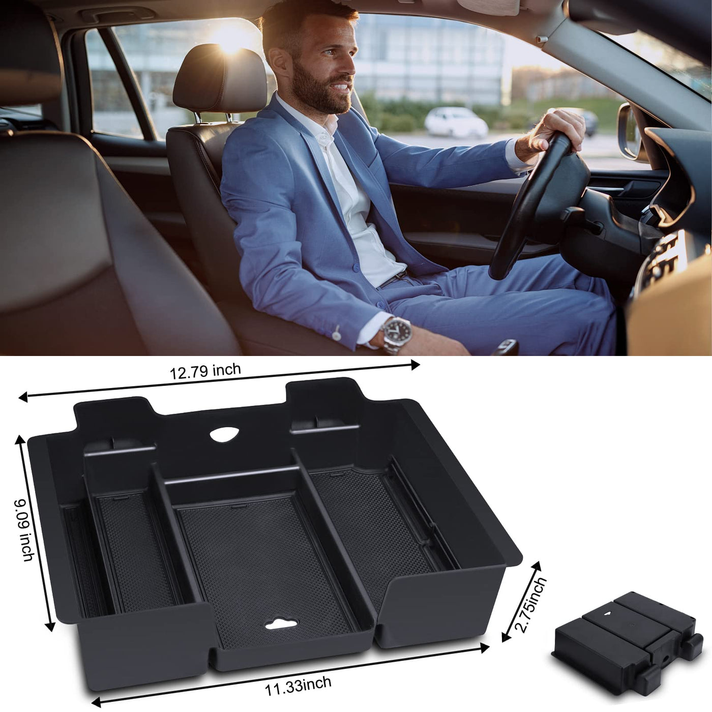 This EAMPLEST full-size center console organizer is the easiest, most convenient way to organize your items. Compatible with 2019 2020 2021 2022 Chevy Silverado/GMC Sierra 1500 and 2020 2021 2022 2023 Chevy Silverado/GMC Sierra 2500 HD 3500 HD accessories(Fits the console with bucket seats ONLY!) Note: it wont fit the console with a safe vault. Function: 1.Non-Slip Rubber Liners: With liners in each compartment, the items will stay in place instead to prevent unnecessary noise. 2.A Breeze To Install: No tools needed for installation! Just drop right in, you will have all of the things at hand. 3.Easy To Disassemble:the rubber pad can be disassembled and cleaned, which is very convenient. 4.ABS Material:strong and durable, within easy reach, convenient classification. 5.Upgrade Double Floors Space: There are two layers to store things. If you need extra organization within your console, this is for you! Keep all your things organized and put together with ease! 6.Great Way To Separate Items: Provides quick access to frequently needed items like phone, coins, sunglasses, pens, keys, business cards, etc, but leaves a lot of room underneath for heavier and larger items. 7.Special Design: There are holes for the USB cable to pass through the tray and for the light to shine the center console! Package Include: 1*Center Console Organizer Tray 5*Rubber Accessories 1*English Manual