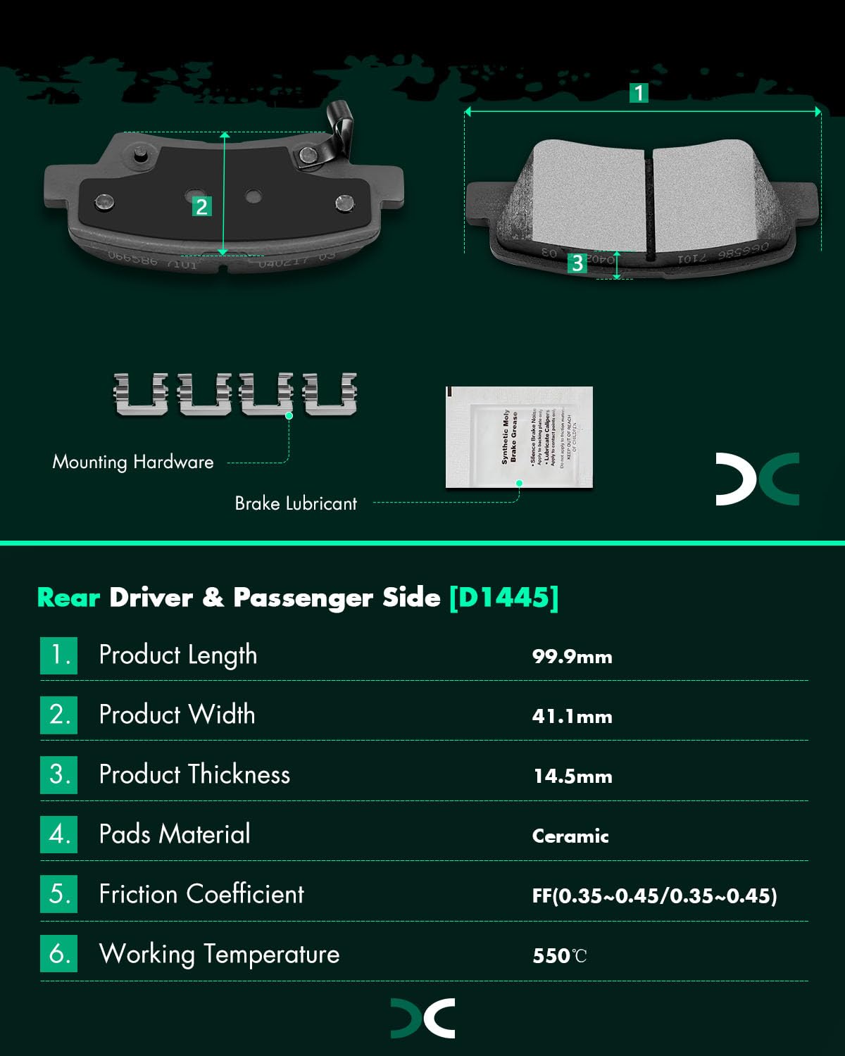 COMPATIBLE VEHICLES : 2012-2017 for Hyundai Azera,2009-2015 for Hyundai Sonata,2011-2016 for Kia Optima Ceramic Disc Brake Pad Kit for 583022TA60,D1445-8428 | SUPERIOR BRAKING : Rear brake pads in ceramic, OE semi-metal and organic formulations provide durability and reliability for a wide variety of vehicle applications, effectively provides superior braking power and longer lifespan | NON NOISY PADS : The pads with slotting design increases friction, heated evenly, heat faster,better ventilation, improves drainage.Ensure exceptional stopping power and quiet operation | CHAMFERS : The rear pads are designed to fit the brake rotors without damaging it, no abnormal sound and for longer life | BUYER NOTICE : Please check the description and compatibility chart before your purchasing
