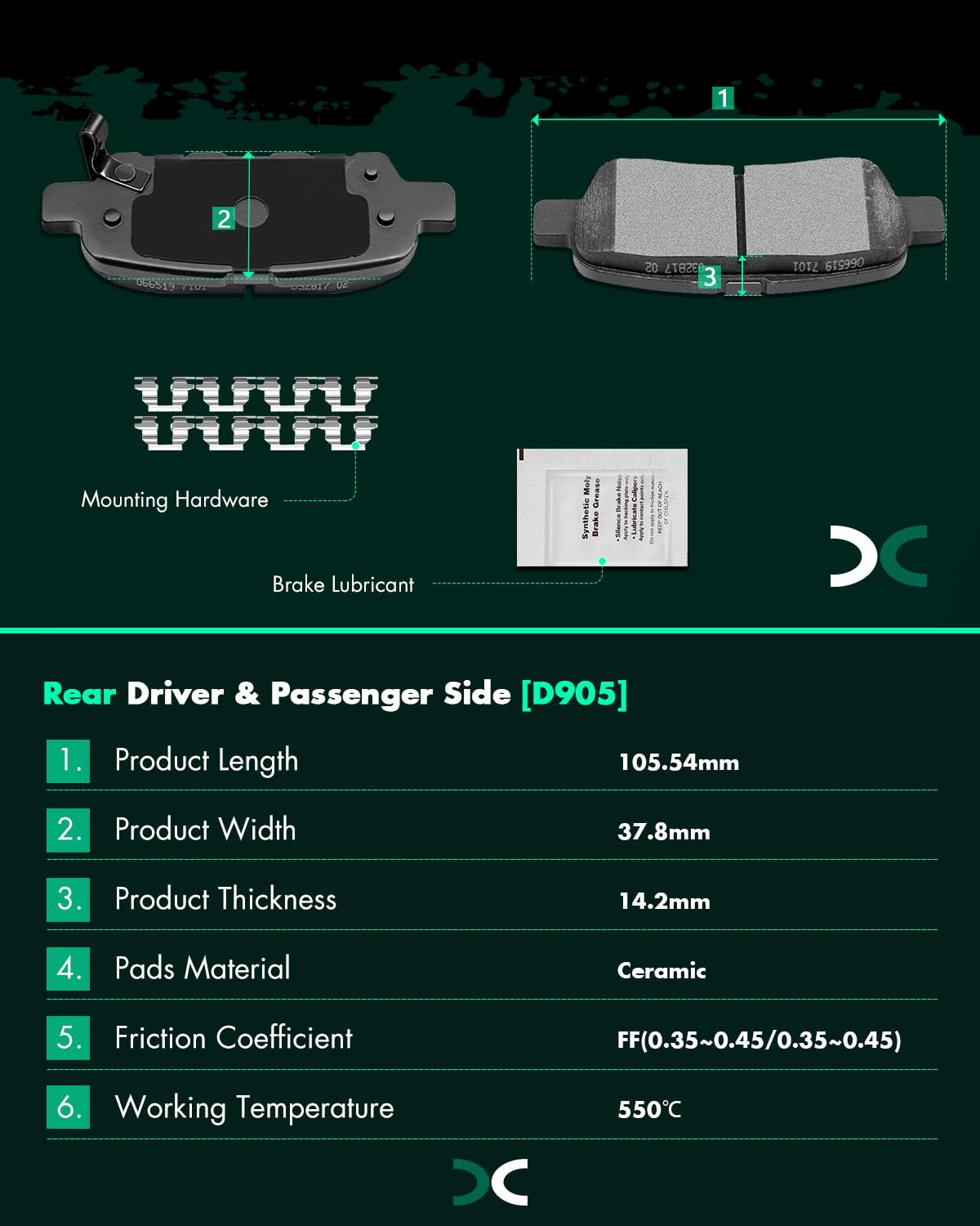 COMPATIBLE VEHICLES - 2003-2005 for Infiniti G35,2003-2005 for Nissan 350Z,2002-2013 for Nissan Altima,2011-2017 for Nissan Juke,2007-2018 for Nissan Sentra Ceramic Disc Brake Pad Kit for D815-7783,ATD905C,D905-7784 | LONGER SERVICE LIFE - Each brake pad also is treated with the scorch friction process to help lower break-in time, and ensure a more consistent characteristic in the lifespan of the brake pad | ULTRA-QUIET - The gasket serves as a buffer between the caliper piston and the brake pad back plate. They act to absorb vibrations, which will reduce noise | DIRECT INSTALLATION - Direct factory replacement without alterations or modifications,ready to be installed right out of the box | BUYER NOTICE - The product package contains 8pcs thermoQuiet brake pads. Please make sure your vehicle matches them before buying