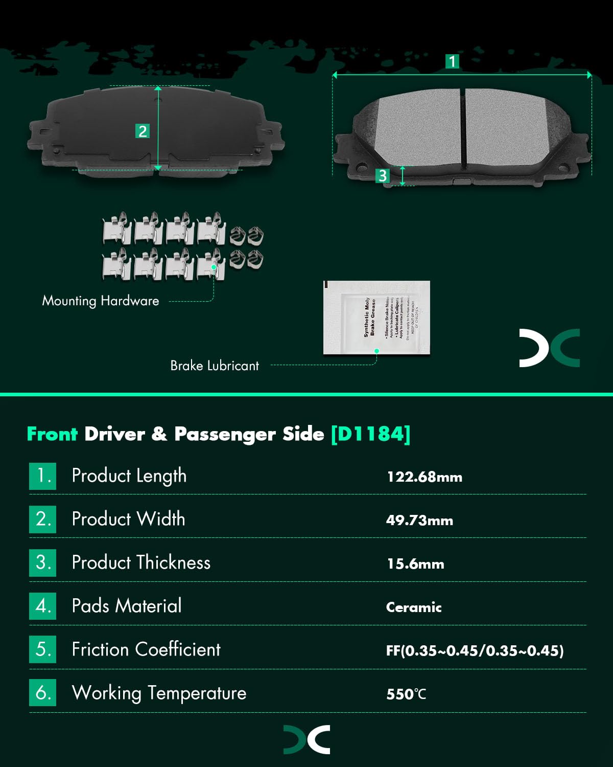 Compatibility information: 2009-2010 For Pontiac Vibe 1.8L2008-2015 For Scion xB 2.4L2009-2019 For Toyota Corolla 1.8L2019 For Toyota Corolla 2.0L2009-2013 For Toyota Corolla 2.4L2009-2014 For Toyota Matrix 1.8LSpecifications: Placement on Vehicle: Front Rear Left RightPad Compound: Ceramic Low Dust FormulaOEM PART NUMBER(S): 4 X Front Ceramic Brake Pads - D1184-85384 X Rear Ceramic Brake Pads - D1354-8463Package contains: 8 Ceramic Pads