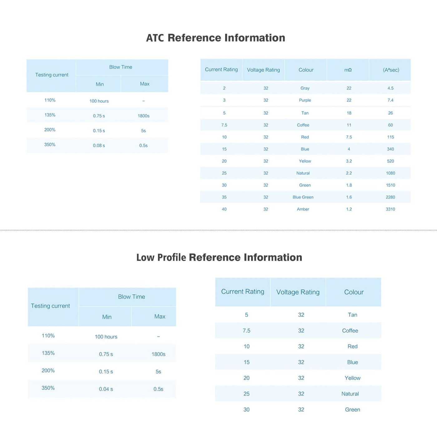 Blade Fuses were introduced in the 1970's and are still widely used by automotive Original Equipment manufacturers. Fuses use the industry's universal color-coding to indicate amp rating. Corrosion resistance for longer service life.