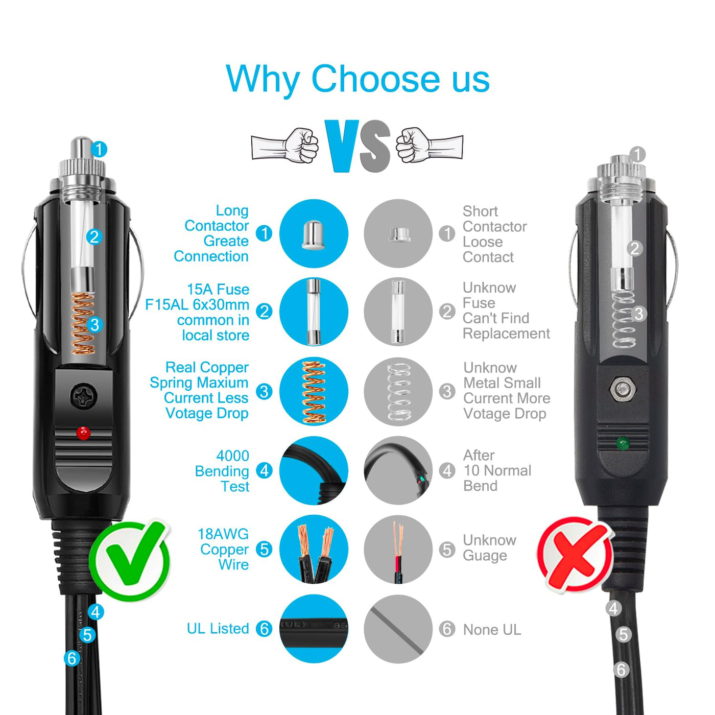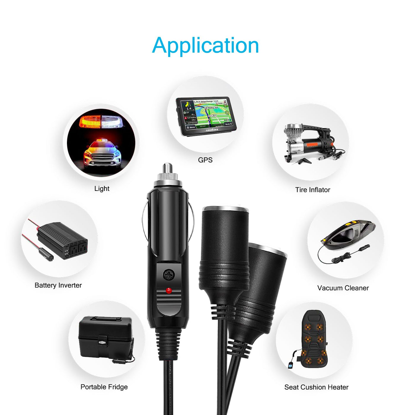 2 Female Sockets doubled the power port in your Car.Expand a 12V AUX port and plug in multiple 12V devices at the same time. The flexible design is easy to fit in center consoles, glove boxes and makes routing cords easier.Please Note:The fuse of this product is 15A. Wire Length: 7 inchWire Size: 18AWG