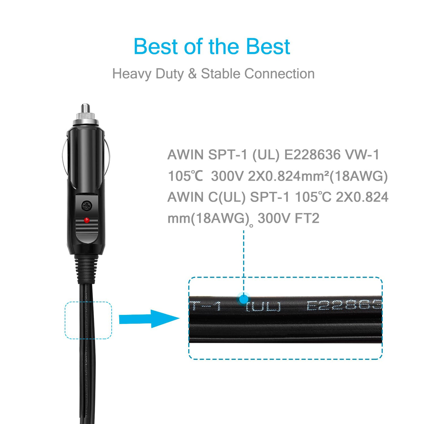 CHANZON 12V/24V 1 to 2 Car Cigarette Lighter Splitter Adapter - 7 inch UL Wire with 15A Fuse - Auto DC Power Supply Extension Co
