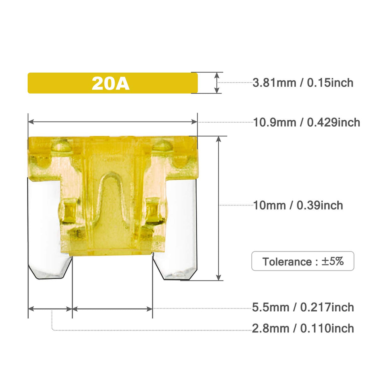 Chanzon 50Pcs 20A Low Profile Mini Micro Blade Fuse 20 Amp 32V Fast Blow Fuses for Automotive Car Truck Vehicle SUV