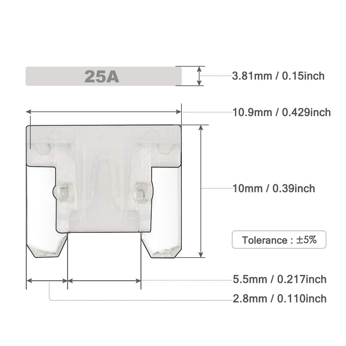 Chanzon 50Pcs 25A Low Profile Mini Micro Blade Fuse 25 Amp 32V Fast Blow Fuses for Automotive Car Truck Vehicle SUV