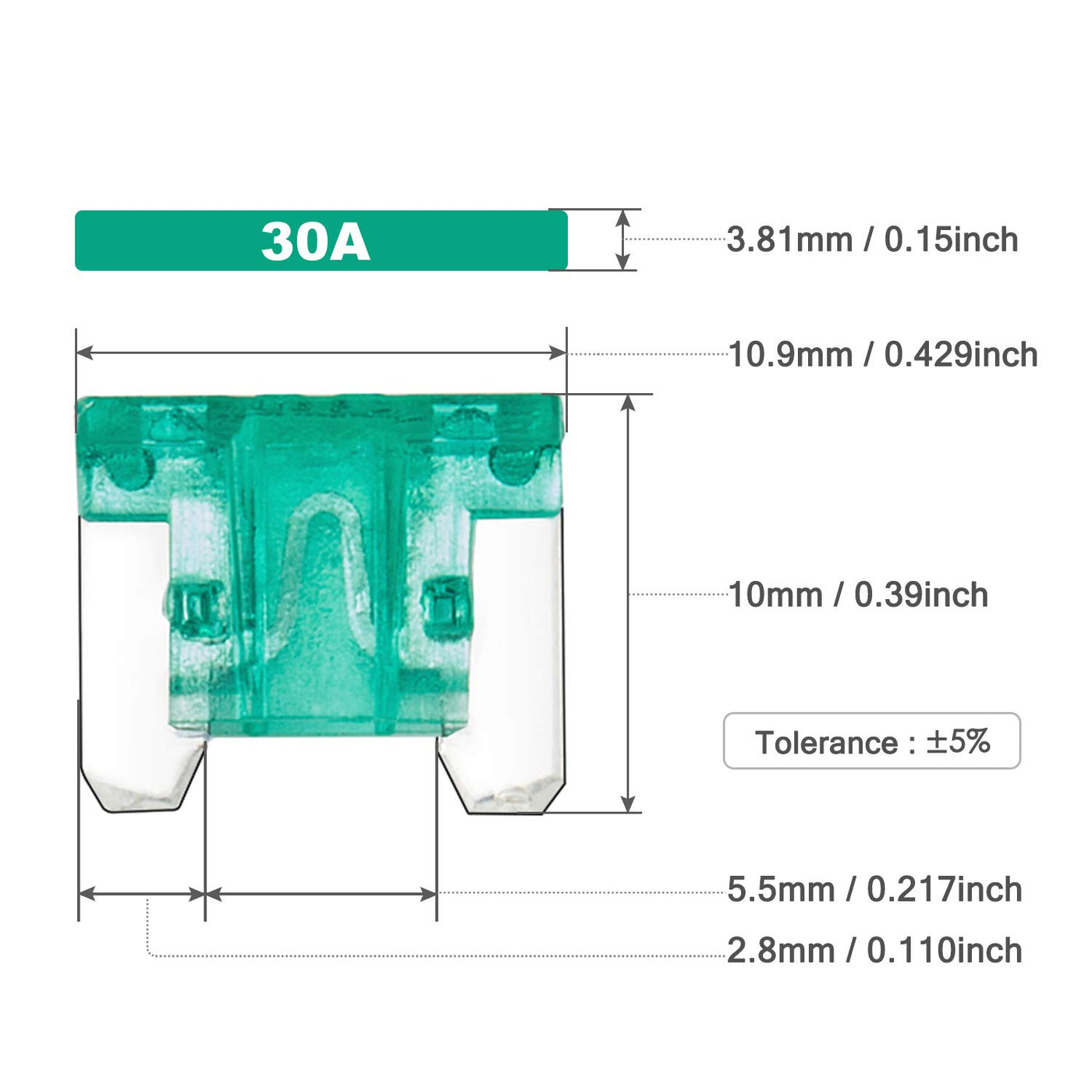 Chanzon 50Pcs 30A Low Profile Mini Micro Blade Fuse 30 Amp 32V Fast Blow Fuses for Automotive Car Truck Vehicle SUV