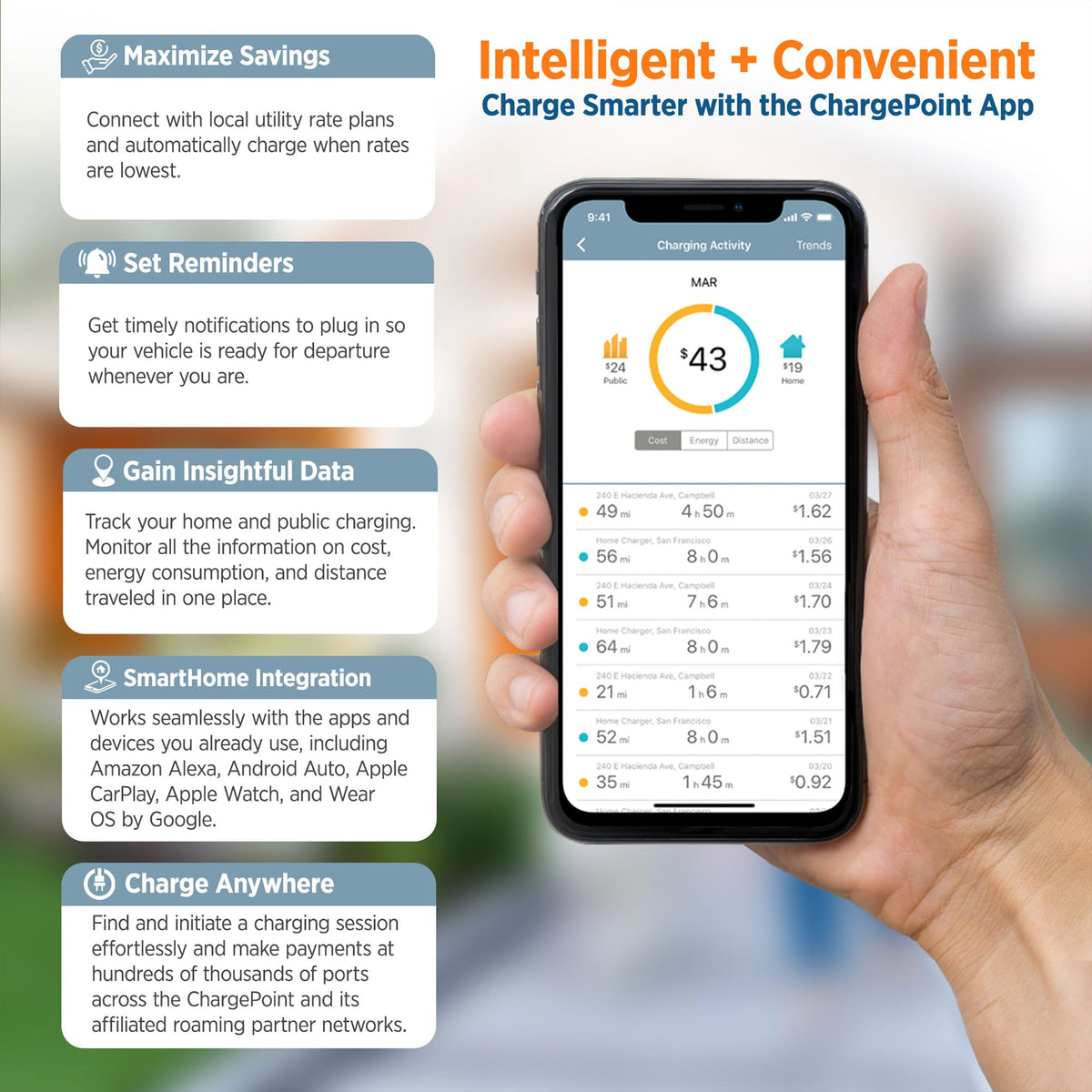 Q: How does the ChargePoint Mobile App enhance my charging experience?A: The ChargePoint Mobile App allows you to control your EV charger remotely, manage charging reminders, connect with smart home devices, locate nearby charging stations, and access real-time charging data and updates.
