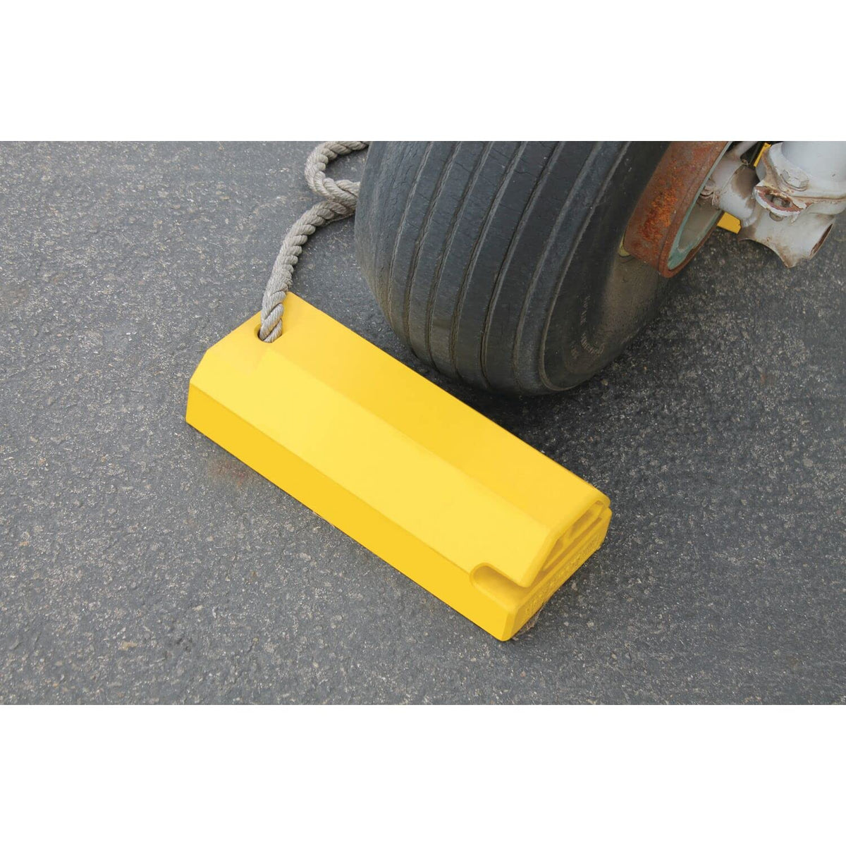 Q: How do I ensure maximum safety while using these wheel chocks?A: To enhance safety, use the bright yellow color for high visibility, and consider models with anti-skid rubber pads for additional grip on smooth hangar floors. Locking ropes on larger models provide extra security by securing the chocks across the tire.