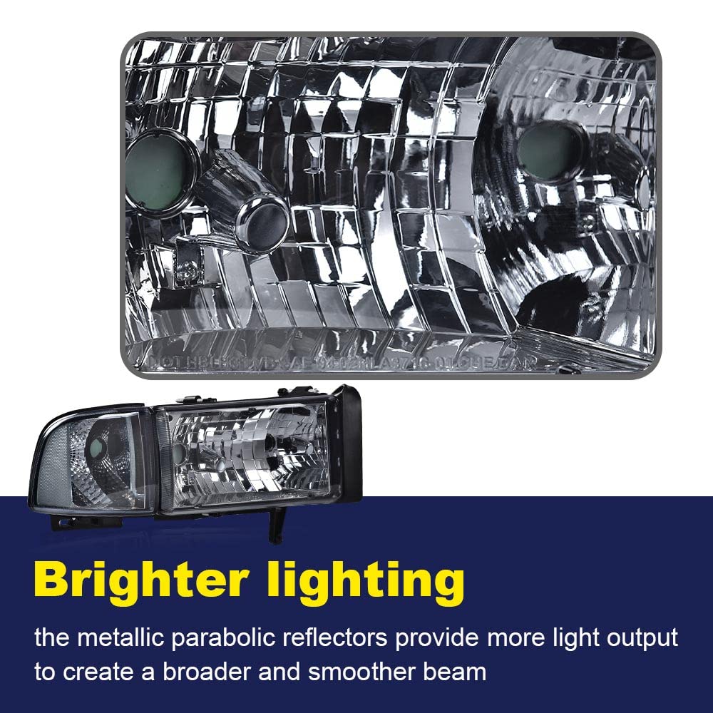 Cheda Front Headlights Assembly Headlamp, Compatible With 1994-2002 Dodge Ram 1500 2500 3500 Black Housing Clear Corner Headligh