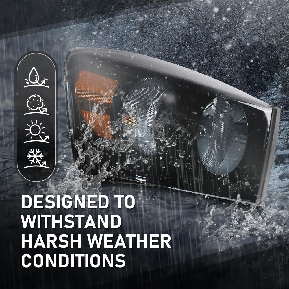 Cheda Front Headlights Assembly Headlamp W/Bulbs Compatible With Dodge Ram 1500 2006-2008/Fit Dodge Ram 2500 3500 2006-2009 Head