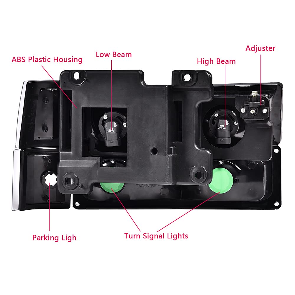 Cheda Headlights Assembly Compatible With 1994-1998 Chevy C10 C/K 1500 2500 3500 Fit 94-99 Chevy Tahoe Suburban(Clear Lens Chrom