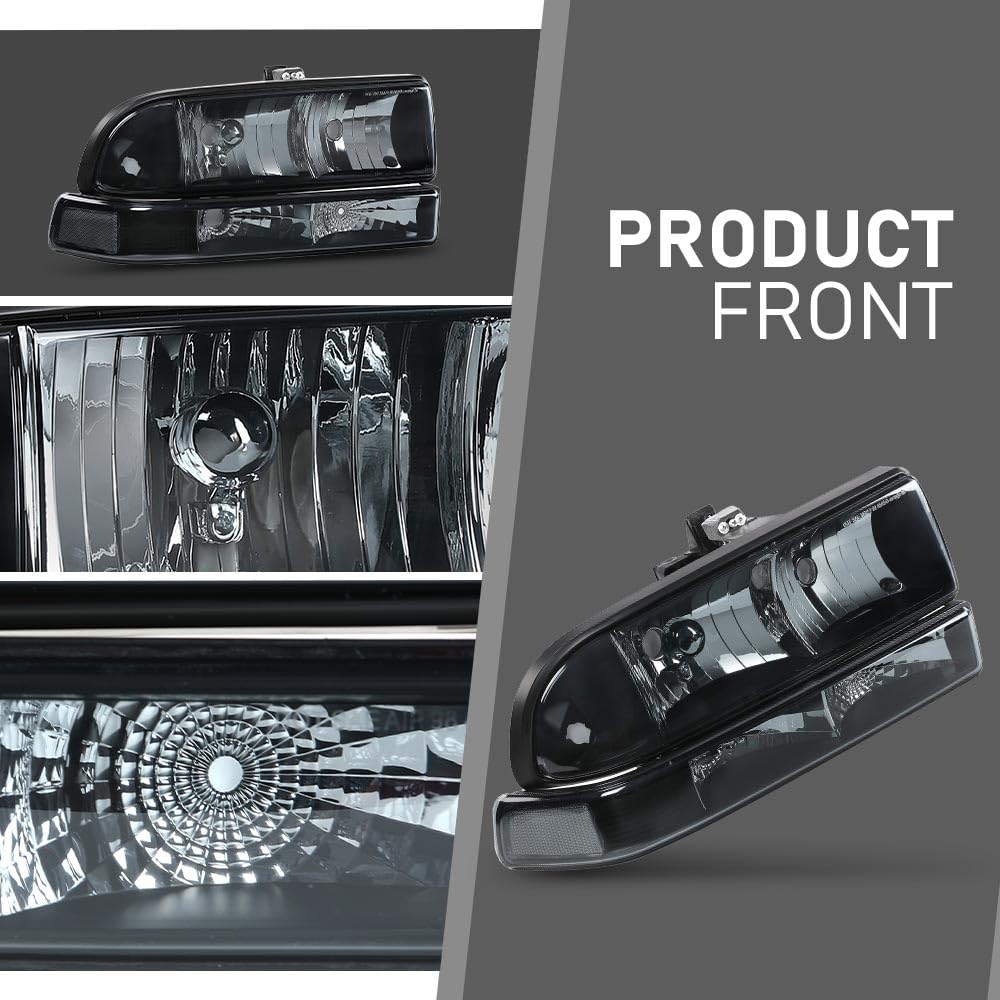 Cheda Headlights Assembly Headlamp Compatible With Chevy Blazer 1998-2005/Chevy S10 Pickup 1998-2004 W/Bumper Turn Signal Lights