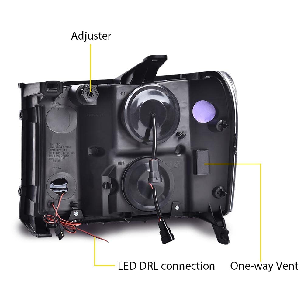 Cheda Led Drl Tube Projector Headlights Compatible With Gmc Sierra 1500 2007-2013/Fit Sierra 2500Hd 3500Hd 2007-2014 Clear Lens