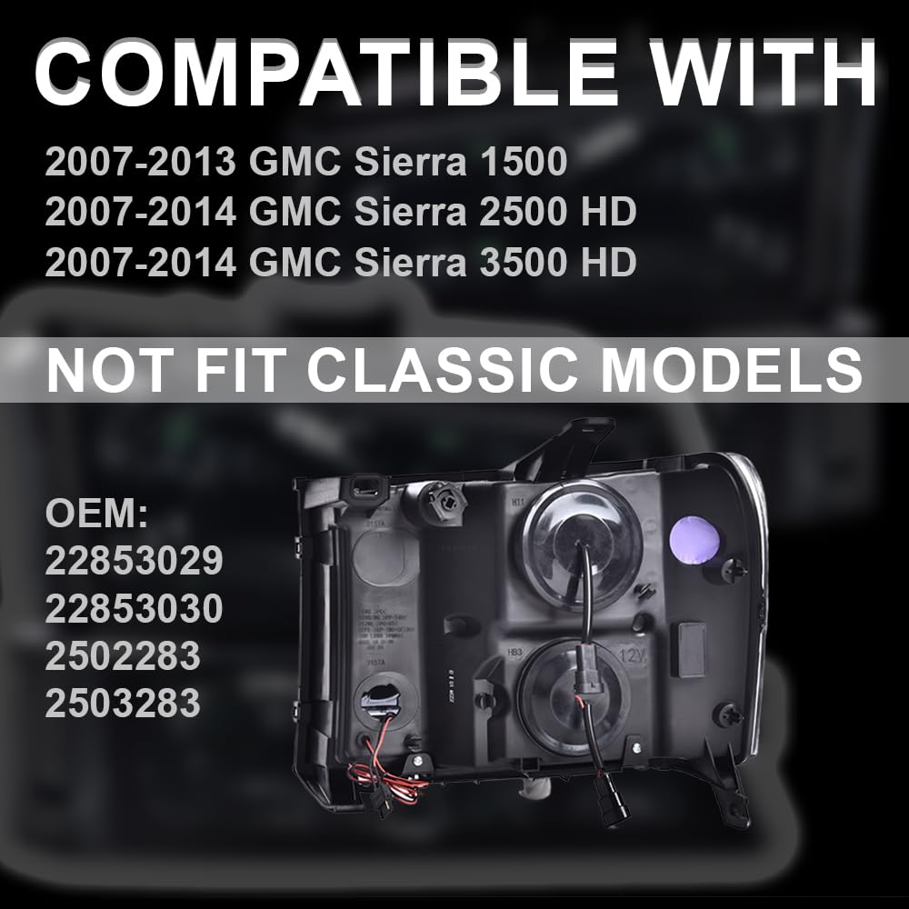 Fitment: Compatible with GMC Sierra 1500 2007-2013/Fit Sierra 2500HD 3500HD 2007-2014(Not Fit Sierra Classic models 2007). | OE/OEM Part Number: 20980241, 20980242, 22853030. | Durable Material: Made of high-quality material, using advanced production technology. Durable and not easily damaged. | Easy To Install: Made to factory specifications for a hassle-free installation. | After-sales service: If there is any problem with the product, please do not hesitate to let us know, we will help you solve the problem.