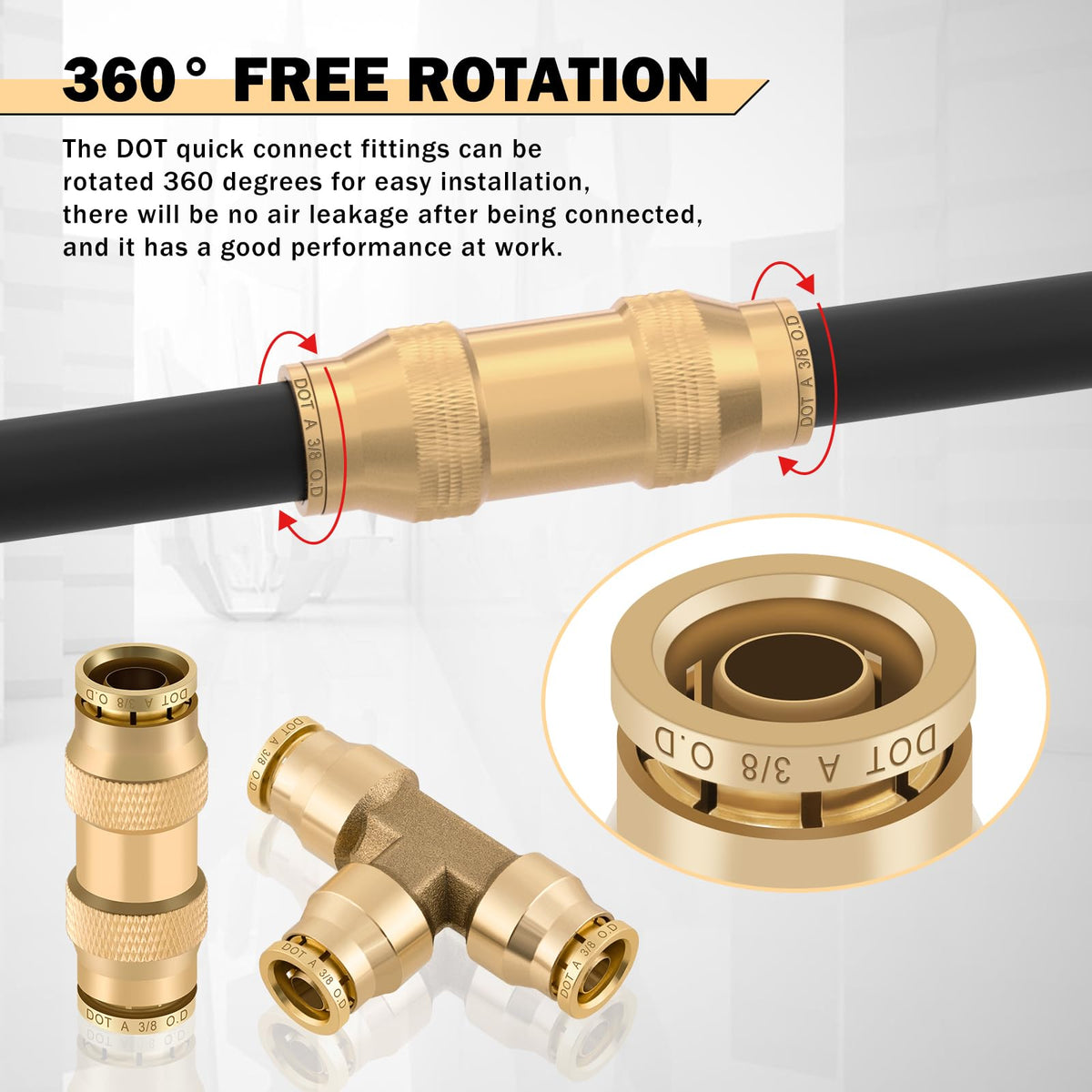 Q: What materials are the CheeMuii air fittings made from?A: The CheeMuii DOT air line fittings are made from high-quality CA360 brass, which provides excellent corrosion resistance, high-temperature ductility, and a long service life, meeting the D.O.T. FMVSS 571.106 standards.