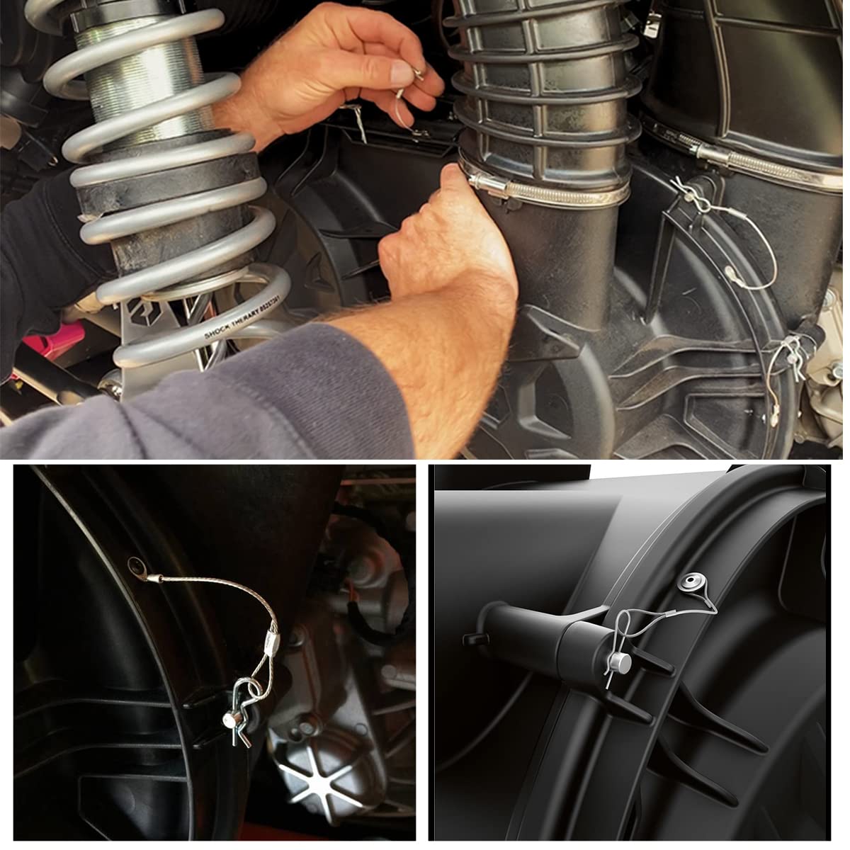Chelhead Can-Am X3 Clutch Cover Quick Disconnect. This pin/lanyard kit allow for tool-less removal of the clutch cover for quick and easy belt changes. These pins and lanyards hold your cover on tight you can adjust the pin depth to your liking to control the holding pressure of the outer cover