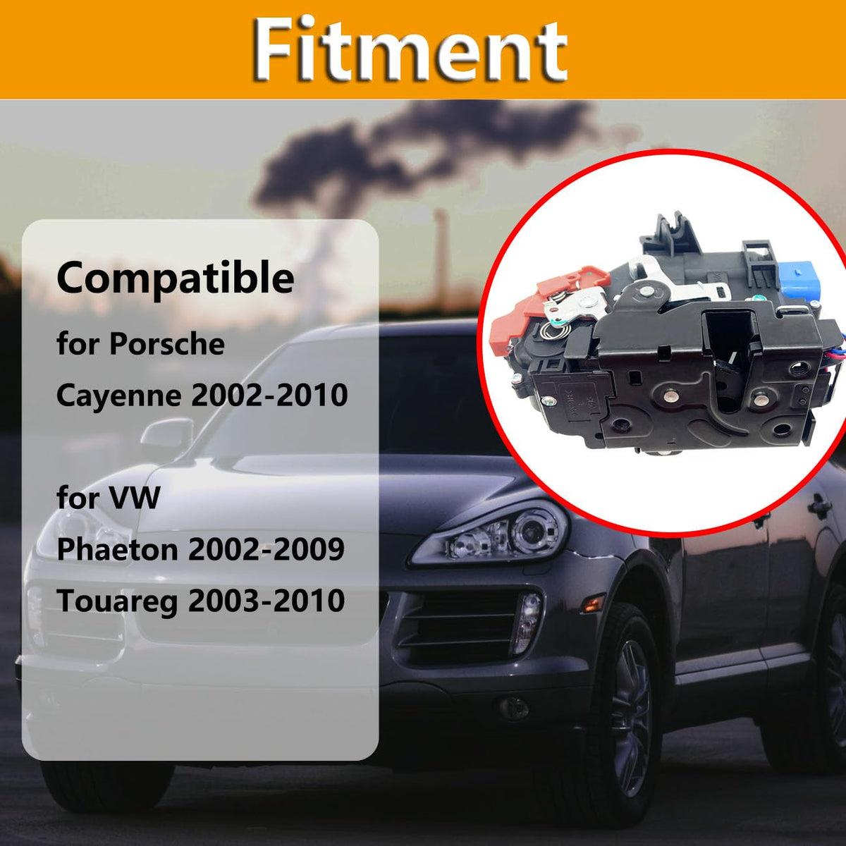 Q: Is the Cheriezing Power Door Lock Latch Actuator Motor compatible with my 2002 Porsche Cayenne?A: Yes, the Cheriezing Power Door Lock Latch Actuator Motor is compatible with 2002-2010 Porsche Cayenne models. Please ensure to verify the part number to confirm fitment.