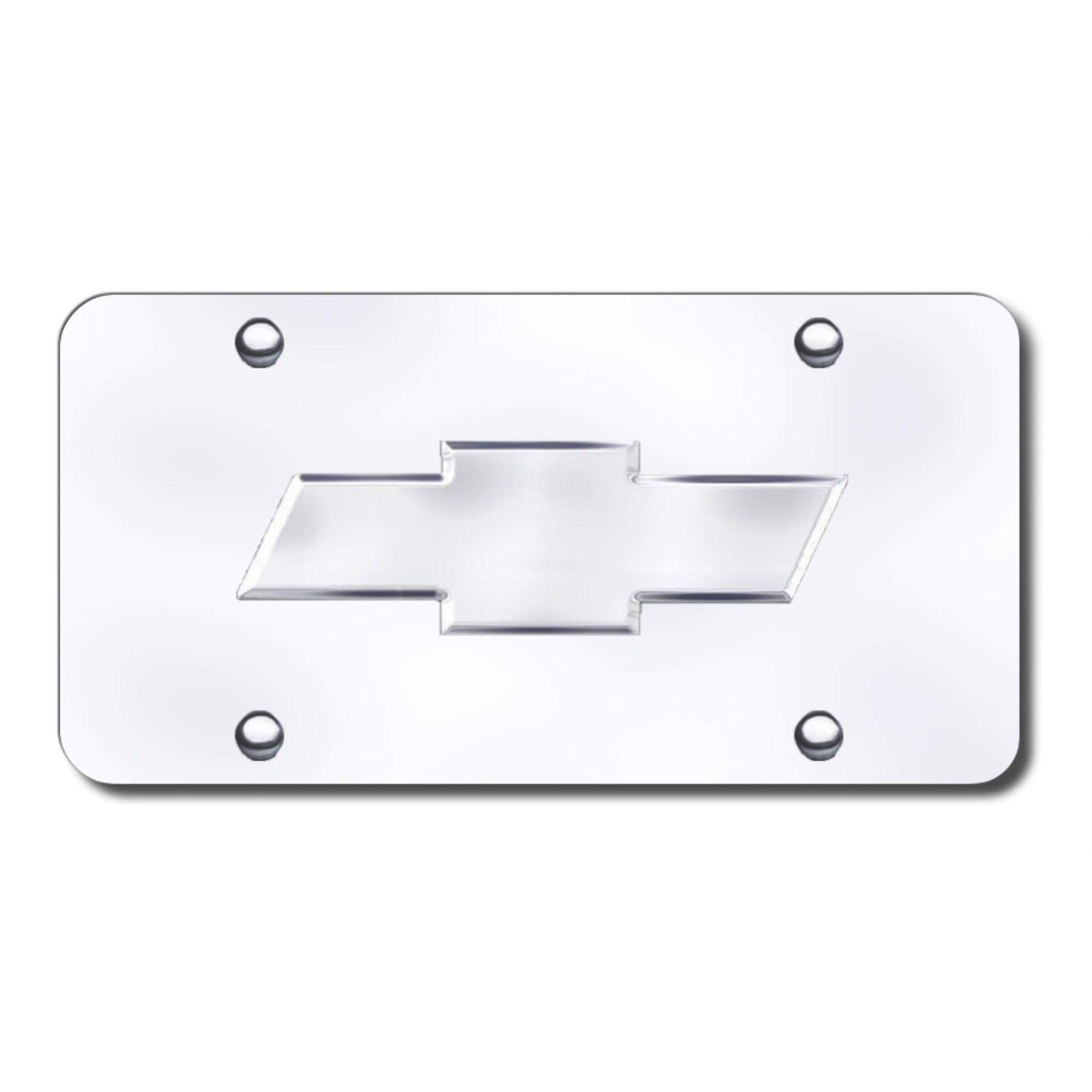 Since 1992, Au-TOMOTIVE GOLD INC(R) has been manufacturing the finest in license frames, logo license plates, Platelock security kits, trailer hitch covers and automotive logo key chains. Manufactured using only the highest grades of brass, mirror polished stainless steel and ABS injection molded plastic, Au-TOMOTIVE GOLD INC(R) plates and frames are available in a choice of 23 Karat gold, mirrored chrome or black powder coated finishes that far exceeded the industry standard for quality. Au-TOMOTIVE GOLD INC(R) where quality is the rule, not the exception. Logo : Chevy New Logo Logo Color : Silver Background Color : Silver Material : Stainless SteelWARNING : This product can expose you to chemicals including Chromium (hexavalent compounds), which is (are) known to the State of California to cause cancer or birth defects or reproductive harm. For more information, visit www.P65Warnings.ca.gov.