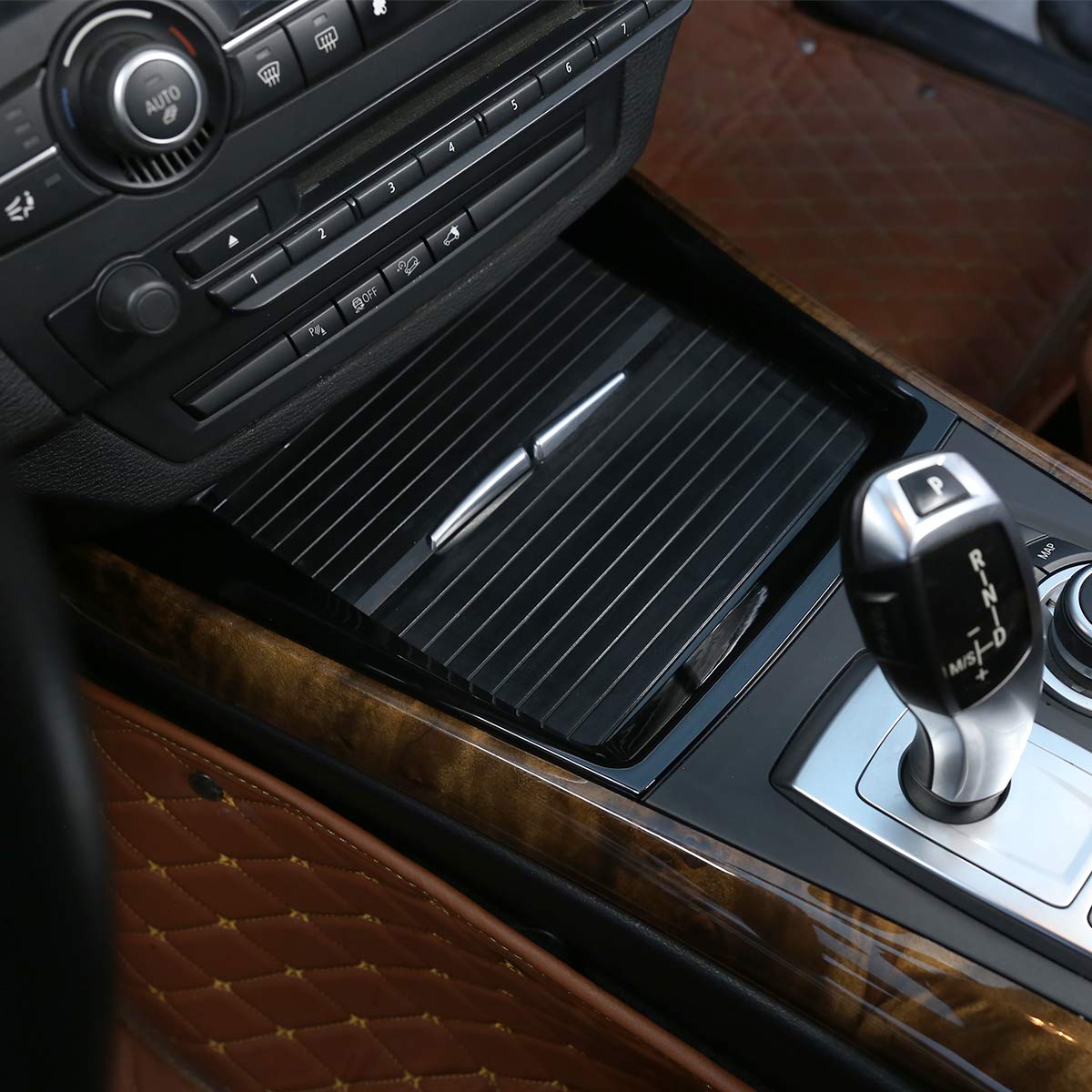 CHEYA ABS Plastic Car Center Console Cup Holder Frame Sticker Trim for BMW X5 E70 X6 E71 2008-2013 Auto Accessories (Black)