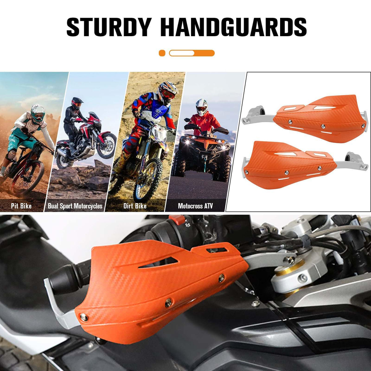 Multi-color handlebar handguards Handlebar protection: large space motorcycle handguards, protect your hands from brush / rocks mud / cold wind; protect brake lever and clutch lever. With enough room for brake cables control and other devices. FITMENT: compatible with ATV Motorbike Motocross Supermoto Racing Dirt Pit Bike handlebars range 7/8'' 22mm and 1 1/8'' 28mm.Ensure the installation and prevent mistakes, Please confirm the handlebar size before purchaseColor:Black /Red/Blue/White/Orange Choose a color that matches to your motorcycle theme color A great replacement for your old handguard for a better hand /motorcycle lever protection Product material: new and sturdy CNC Aluminum Condition: good Package includes:1 set motorcycle handlebar handguard EASY INSTALLATION Just insert hand guard spacers into the end of your handlebar and then tighten