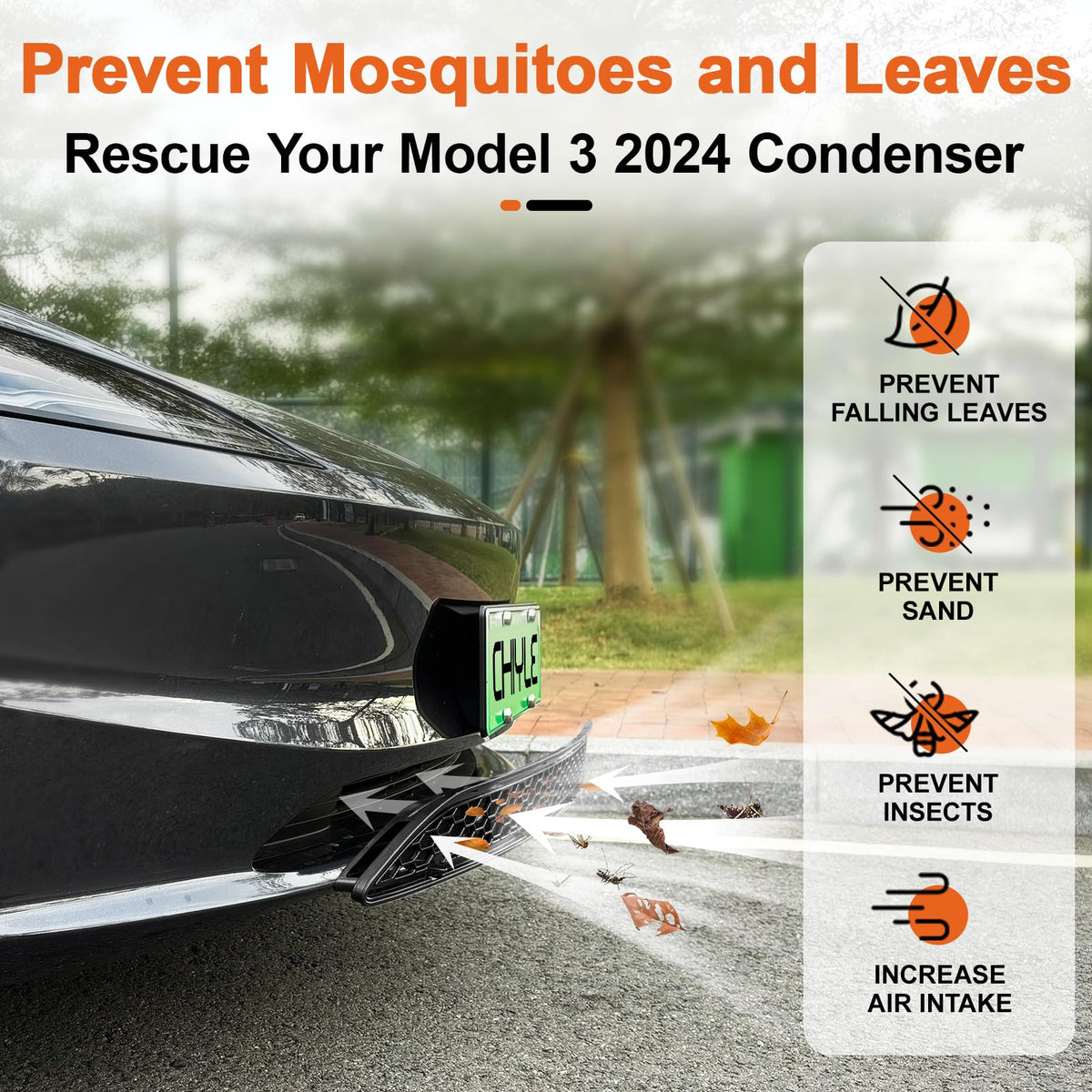 CHIYLE's upgraded front grille mesh design for the Tesla Model 3 Highland(2024) features a comprehensive stainless steel protective mesh that effectively isolates debris (leaves, branches, stones, gravel, small flying objects, etc.) from entering the air intake, effectively protecting the interior of the car and maintaining its stability, while reducing resistance and achieving better speed. Unlike previous non detachable products, our CHIYLE adopts a split disassembly design. With just one click, we can open the stainless steel protective net, disassemble it to clean the dirt inside, and quickly install it. CHIYLE Tesla front grille is an essential accessory of Tesla Model 3 2024 on daily roads, mountain roads, and highways. Even if your car is parked on the roadside, under trees, or next to a trash can, it can effectively block small objects from entering your car.