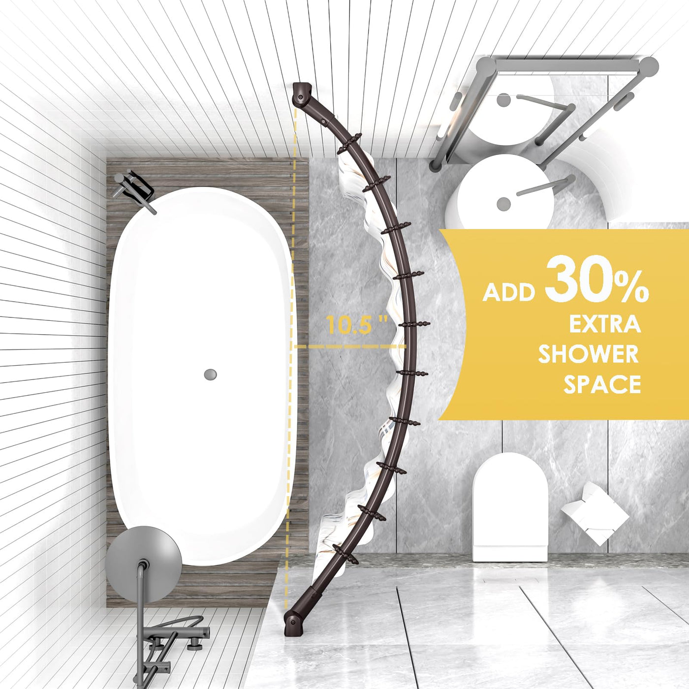 Q: What features make the Chrsouly Curved Shower Rod a better choice than a straight rod?A: The curved design of the Chrsouly Shower Rod provides an additional maximum of 10 inches of elbow room and shower space compared to a straight rod, enhancing comfort and usability.