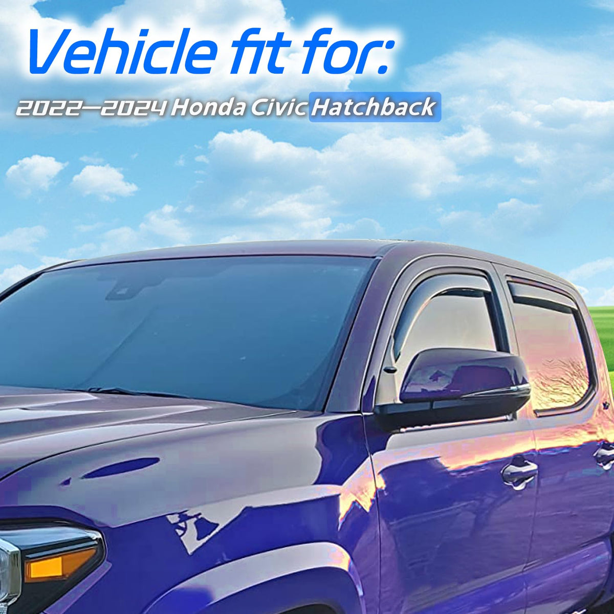 CHYKORLA 4pcs in-Channel Rain Guards Fit for 2022 2023 2024 Honda Civic Hatchback,Smoke Tinted Window Visors Sun Shields, Wind D