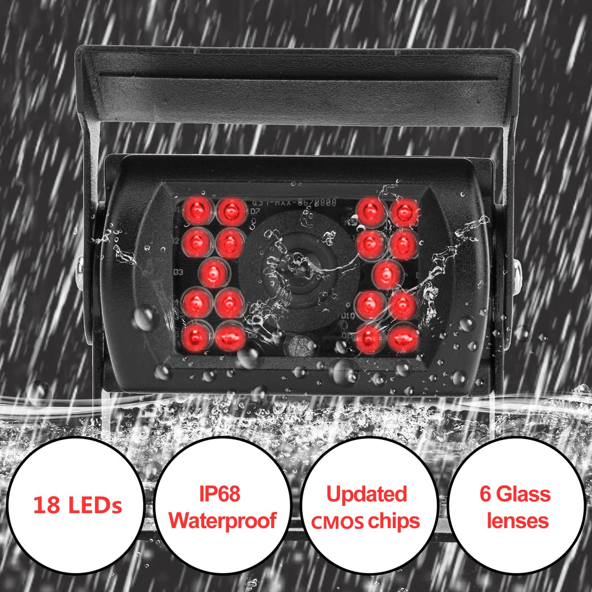 Q: Is the backup camera system waterproof?A: Absolutely, the CICMOD Backup Camera has an IP68 waterproof rating, ensuring it functions effectively in rainy, foggy, or snowy conditions without water damage.