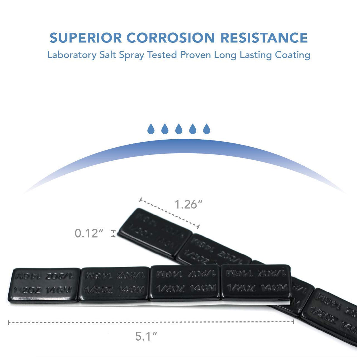 CKAuto brand Low Profile Adhesive Wheel Weights Black, U.S.standard and high quality is guaranteed. Providing safe tire system and safe driving lead-free U.S. Premium adhesive wheel weights; CK U.S. made UltraStick white tape; CK EasyPeel makes the removal process more efficient Proven long-lasting coating for corrosion protection (more than 700 hours salt spray testing) Designed segments allows for easier contouring to the wheel shape when installing Specifications: 1 segment: 1/2 oz 1 strip : 4 segments 1 box: 30 strips In total 1boxes=30strips=120segments=60oz