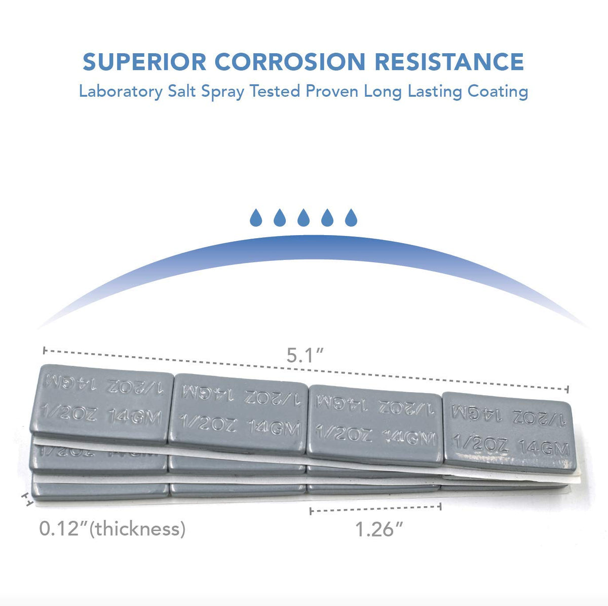 CKAuto brand Low Profile Adhesive Wheel Weights-Grey, U.S.standard and high quality is guaranteed. Providing safe tire system and safe driving. Lead-free U.S. Premium adhesive wheel weights; CK U.S. made UltraStick white tape; CK EasyPeel makes the removal process more efficient Proven long-lasting coating for corrosion protection (more than 700 hours salt spray testing) Designed segments allows for easier contouring to the wheel shape when installing Specifications: 1 segment: 1/2 oz 1 strip : 4 segments 1 box: 30 strips In total 1boxes=30strips=120segments=60oz