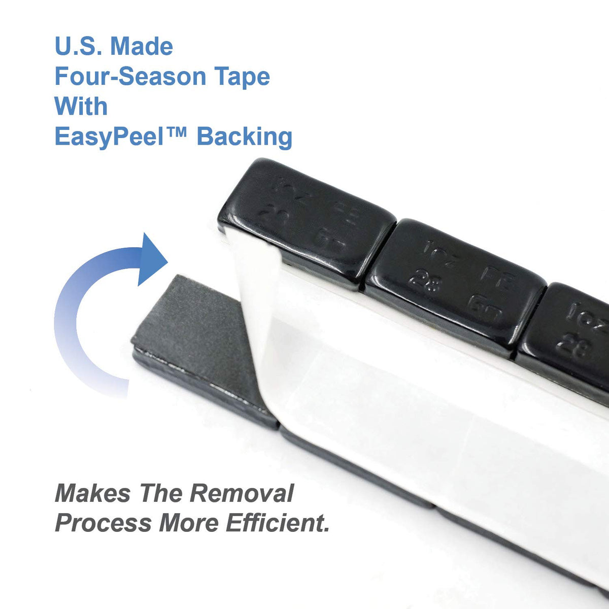 Q: What are CKAuto adhesive wheel weights made of?A: CKAuto adhesive wheel weights are made from high-quality, lead-free materials designed to provide superior corrosion resistance. They feature a U.S. made UltraStick white tape that ensures a strong bond and easy removal.