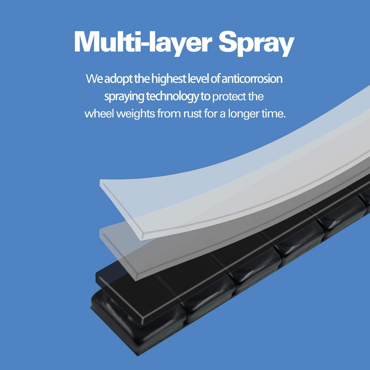CKAuto brand Adhesive Wheel Weights-Black, U.S.standard and high quality is guaranteed. Providing safe tire system and safe driving. lead-free U.S. Premium adhesive wheel weights; CK U.S. made UltraStick white tape; CK EasyPeel makes the removal process more efficient Proven long-lasting coating for corrosion protection (more than 700 hours salt spray testing) Designed segments allows for easier contouring to the wheel shape when installing Specifications: 1 segment: 1/2 oz 1 strip : 7 segments 1 box: 18 strips In total 4boxes=72strips=504segments=252oz
