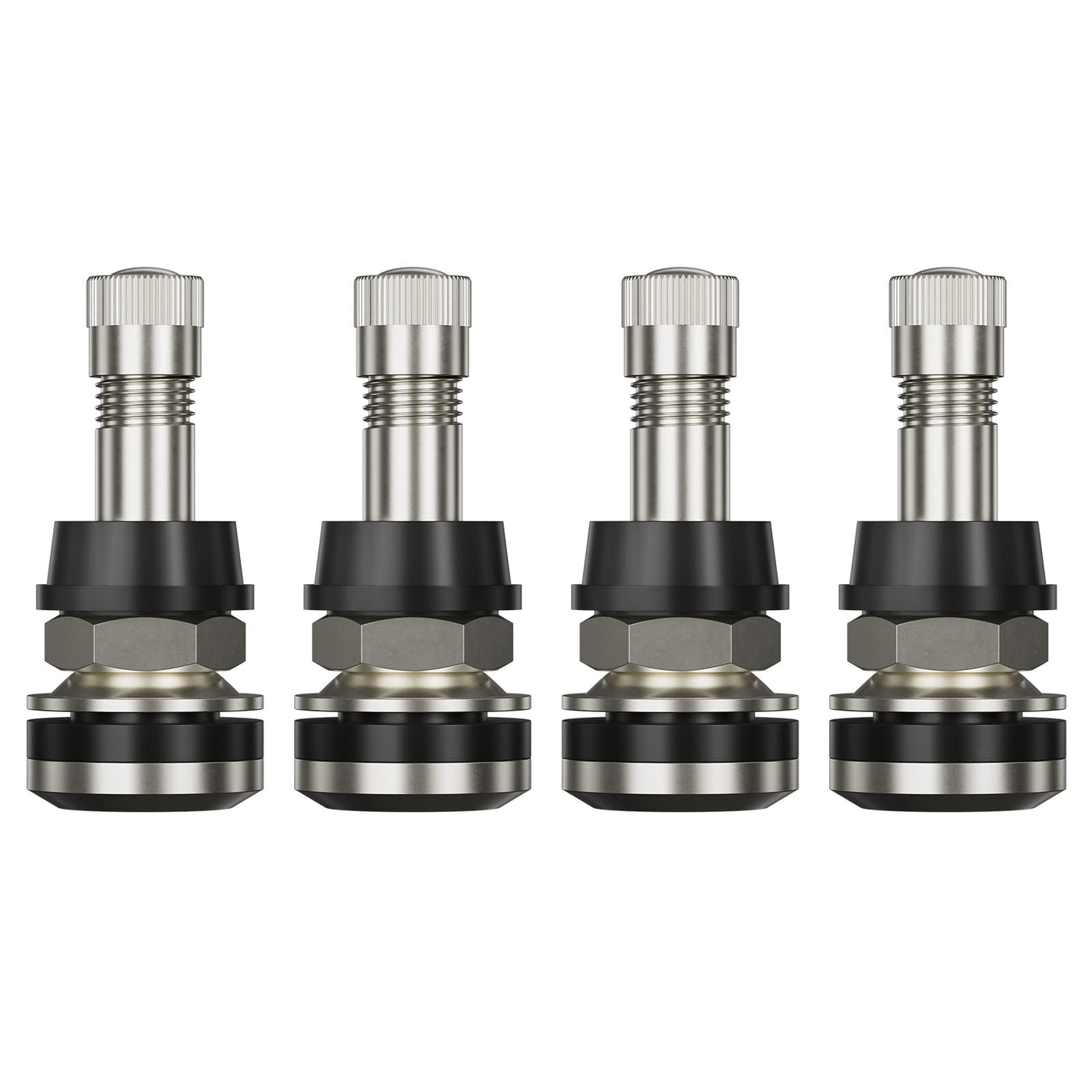 CKAuto TR-416 Metal Valve Stems are applicable to rim holes of 0.453 inch and 0.625 inch in diameters, 1 1/2'' Effective Length. Constructed of high quality brass chrome and EPDM rubber, has the advantages of aging resistance, serving your tires for a long time. Including high temperature valve core, hold the pressure well and ensure the gas tightness, easy and convenient to install. Specifications: Material: brass,chrome finish Effective Length: 1 1/2 inch Complete Size:1.7'' L x 0.75'' W Color: silver/black Quantity: 4pcs/pack Package Includes: -4 x Metal TR416 Valve Stems