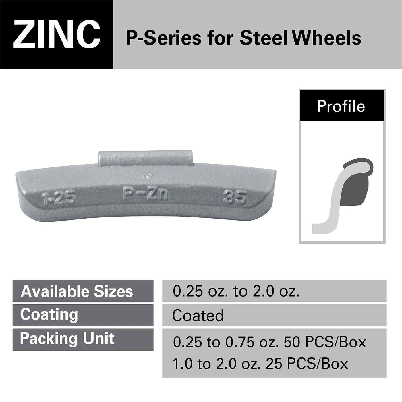 CKAuto P Series Zinc Clip on Wheel Weights 0.75oz, 3/4oz, Coated, 50Pcs/Box Fit for Steel Wheel